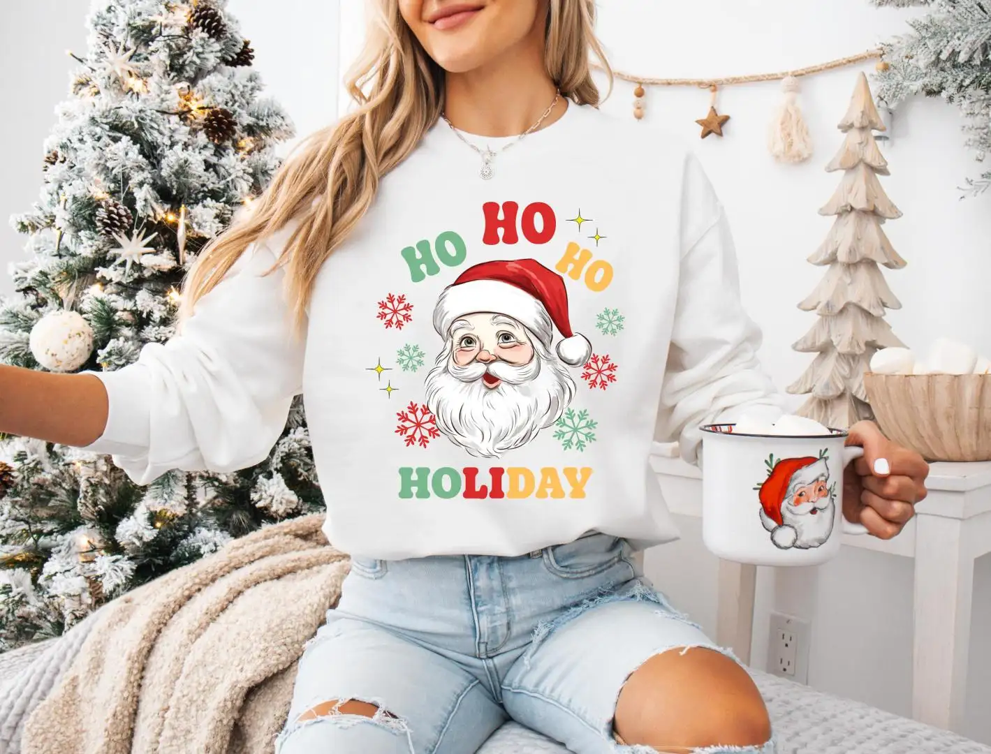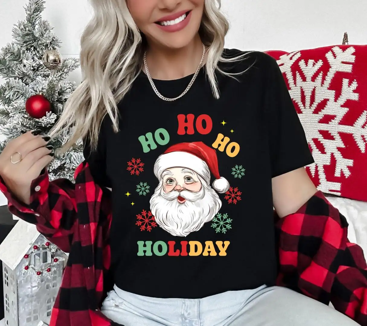 Santa Claus Sweatshirt, XMAS Holiday Hoodie, Christmas Ho Ho Ho T-Shirts, Santa Claus Girls Crewneck, Christmas Party Tee