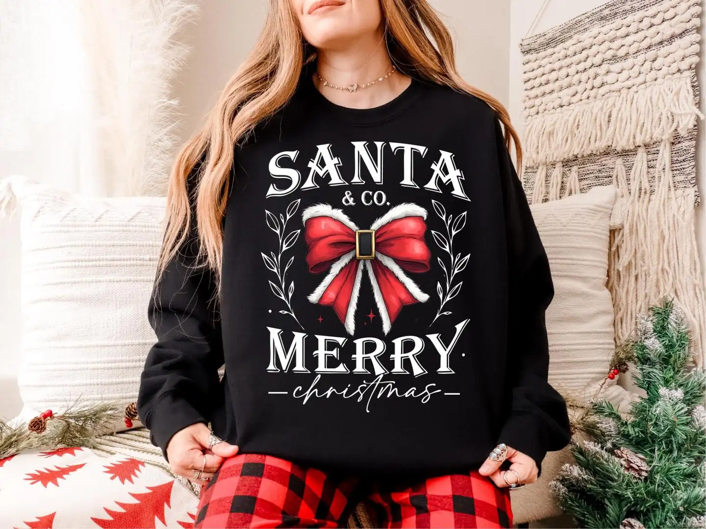 Santa & Co. Merry Christmas Shirt, Christmas Santa Bow Sweater, Christmas Coquette Bow Tee, Merry Christmas T-Shirt, Santa and Co Sweatshirt