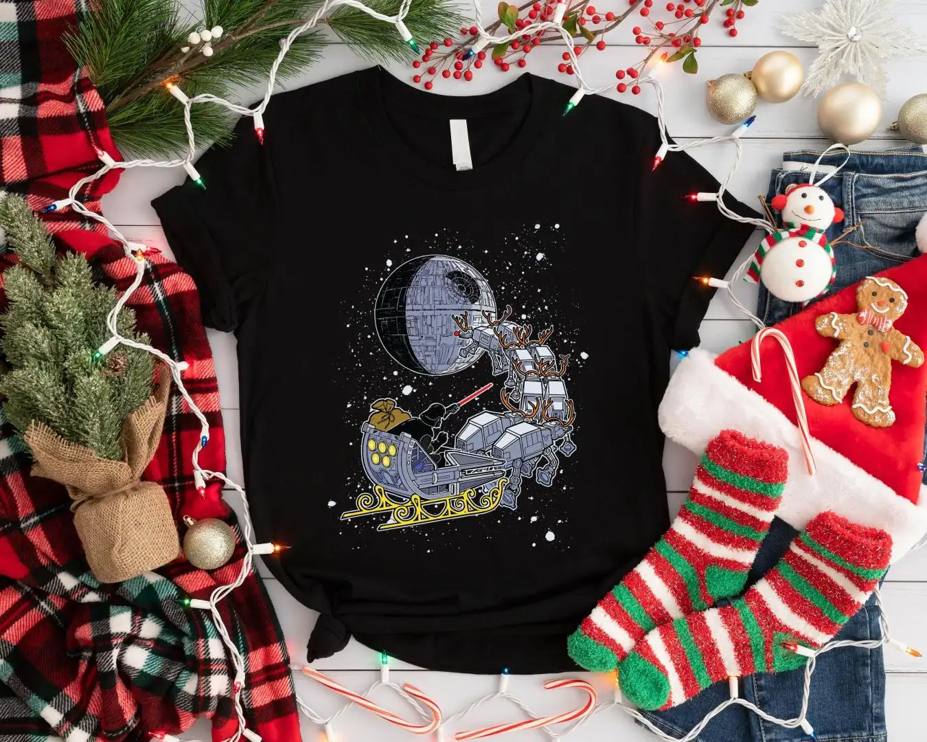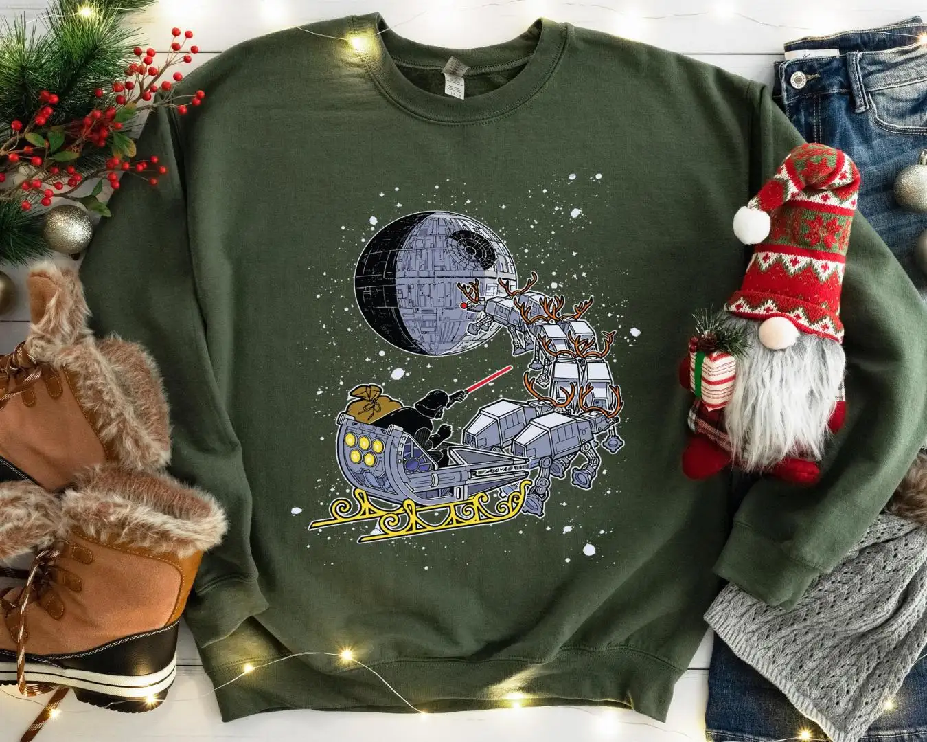 Review Santa Darth Vader Open Sleigh Christmas Lights Shirt, Disney Star Wars Xmas Shirt, Disneyland Holiday Sweatshirt, Galaxy's Edge Xmas Shirt