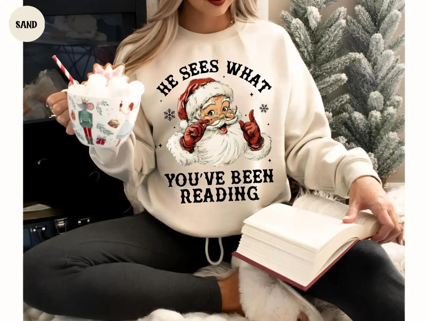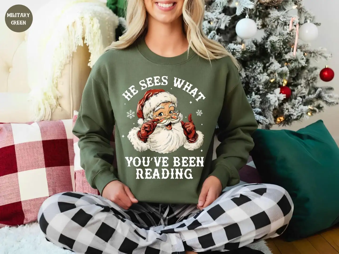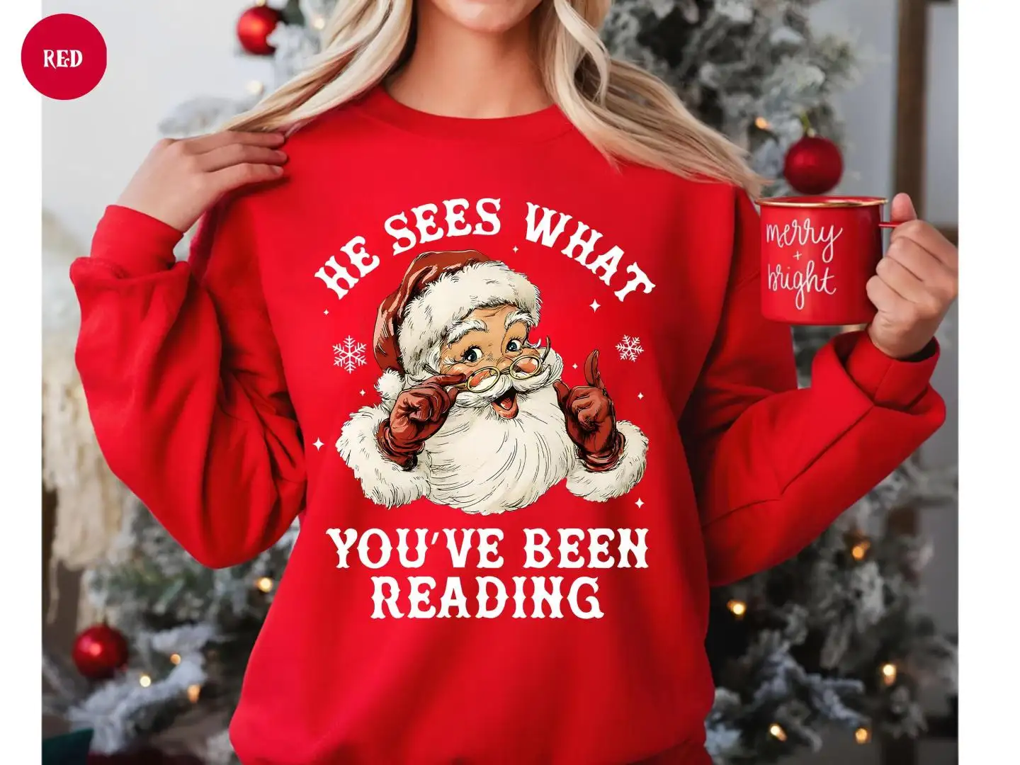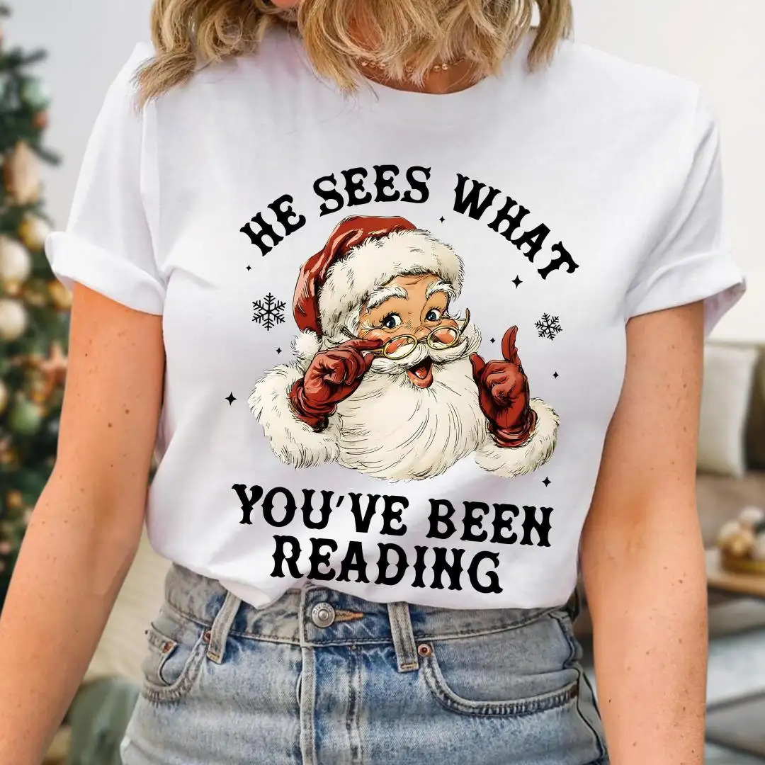 Santa Reading Shirt, He Sees What You’ve Been Reading Shirt, Christmas Book Shirt, Santa Bookworm Tee, Book Lovers Gift, Reading Holiday Top