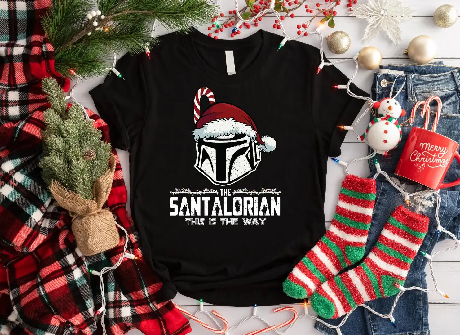 Santalorian Christmas Shirt, Mandalorian Christmas Shirt, Baby Yoda Shirt, Christmas Shirt, Baby Yoda Christmas Tee, Baby Yoda Shirt
