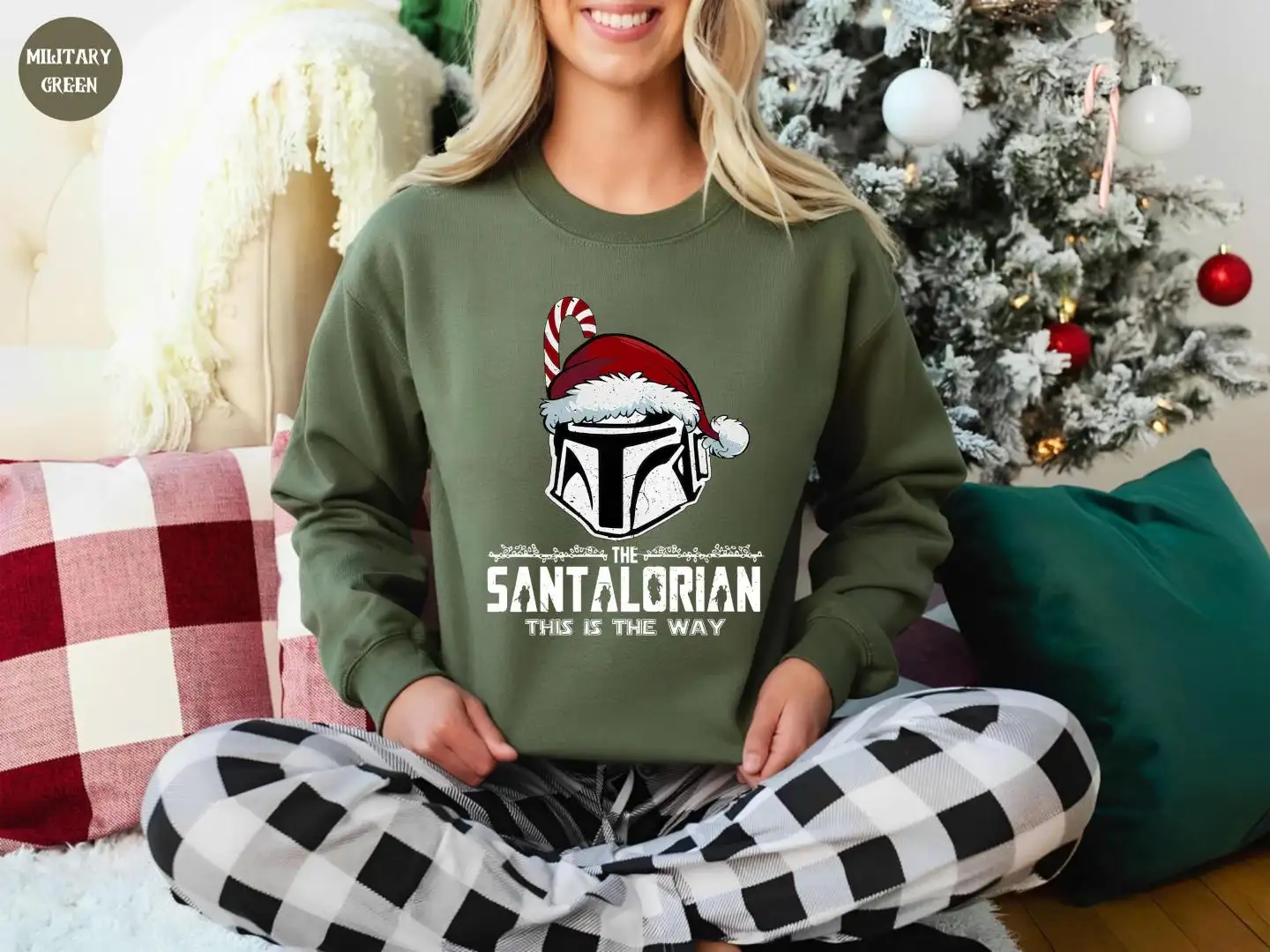Review Santalorian Star Wars Christmas Shirt, Christmas Men Gift, Disney Christmas Shirt, Disneyland Trip Shirt, Mandalorian Christmas Shirt, WDW