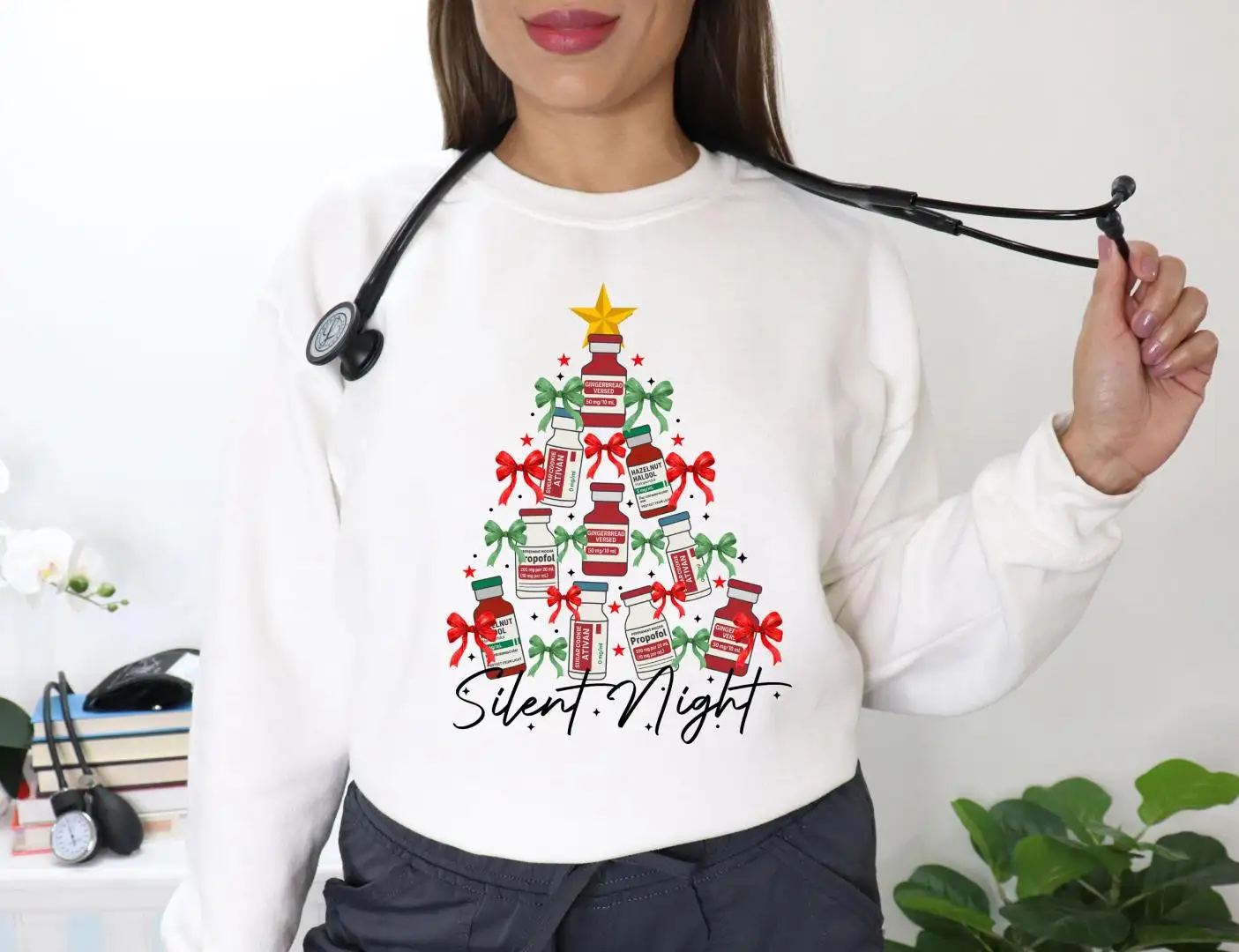 Silent Night Christmas Sweatshirt, Medical Christmas Tee, Nurse Holiday Hoodie, ICU Nurse Christmas Shirts, RN Nurse Party Gift