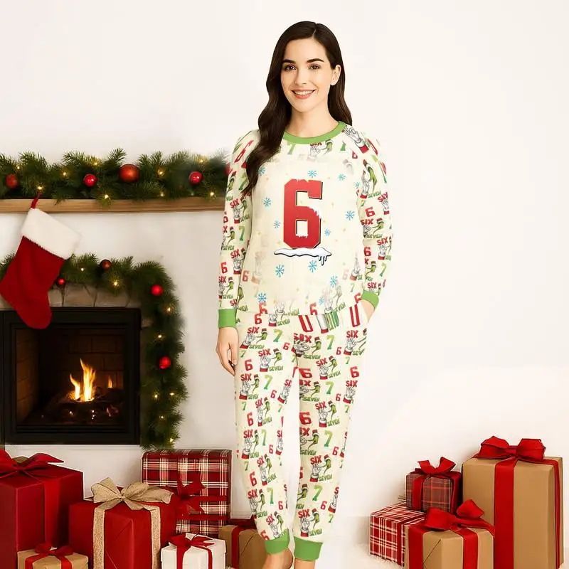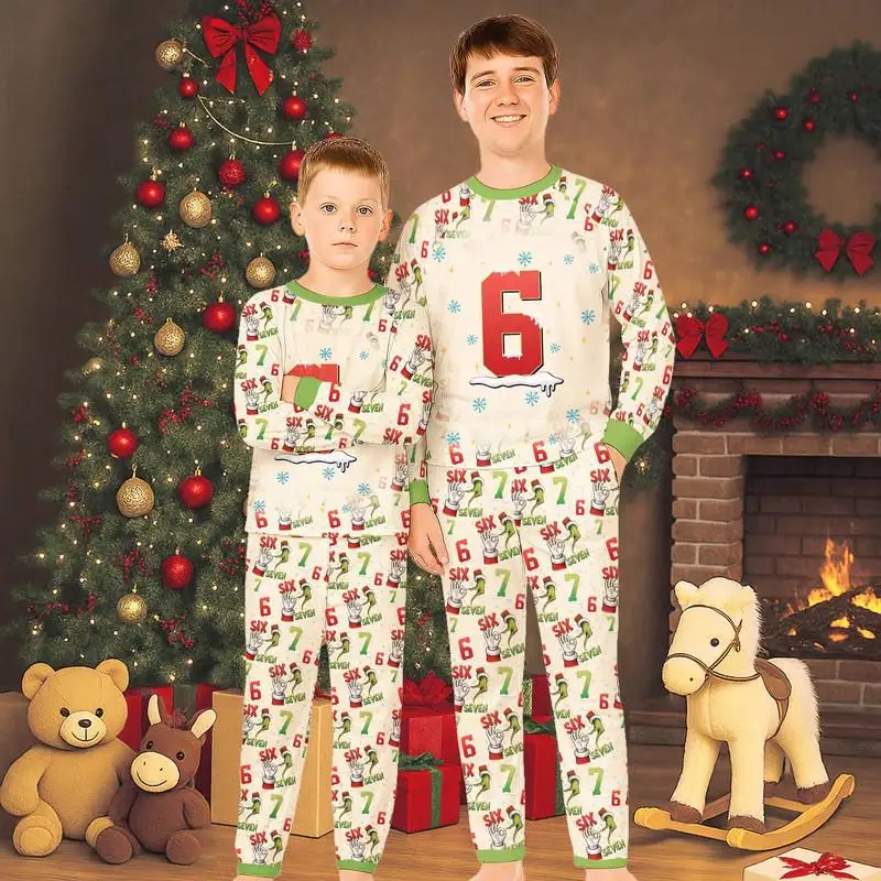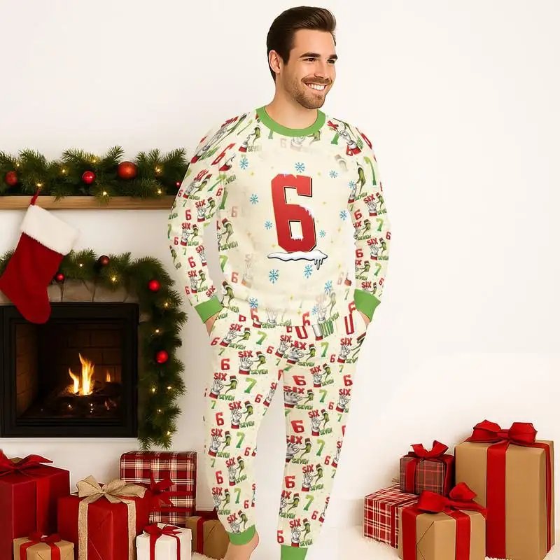 Six Number Raglan Pajamas Set, 67 Christmas Raglan Pajamas Set, Christmas Six Seven Pajamas, Xmas Family Pajamas, Christmas Holiday Gift 04