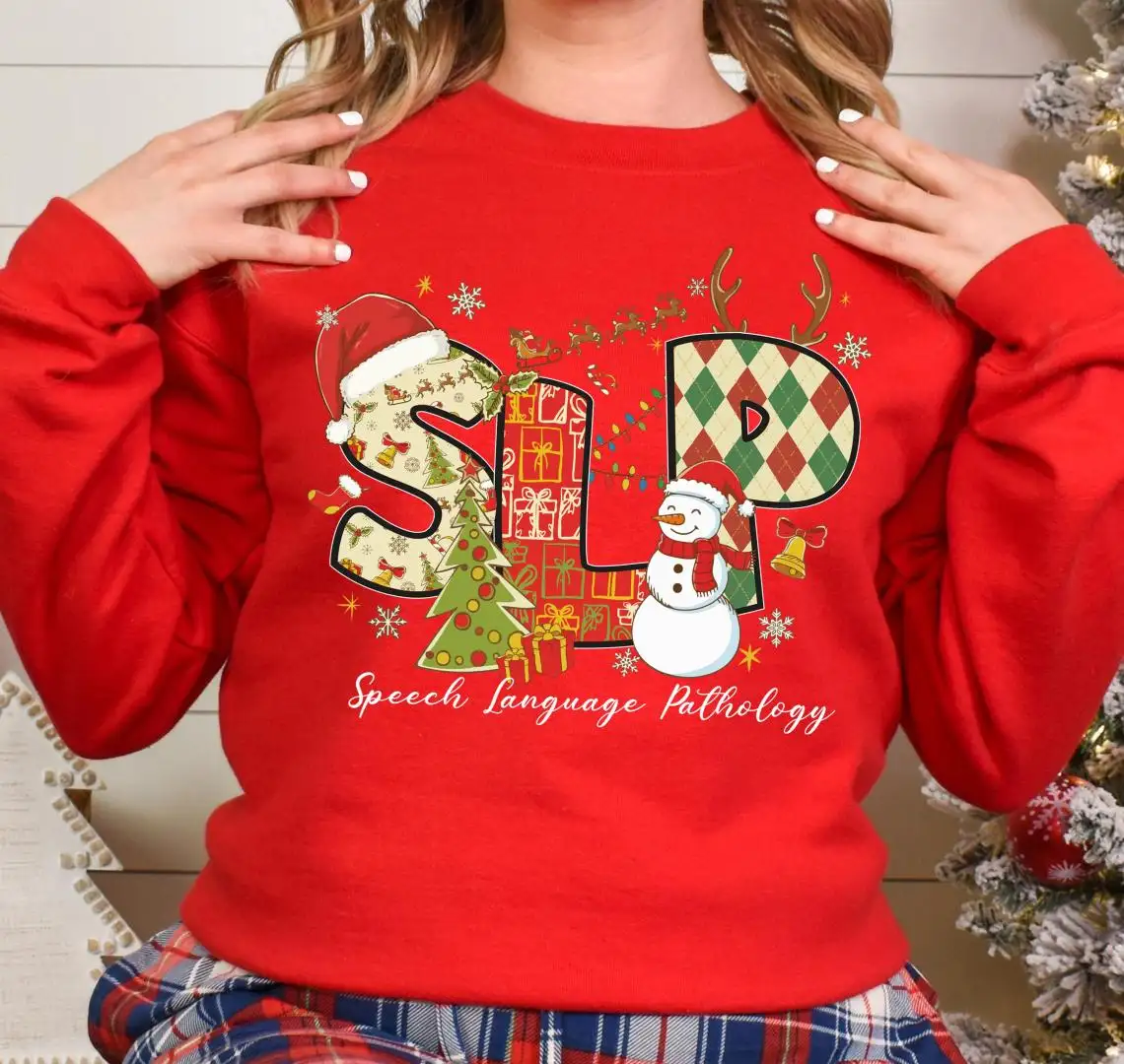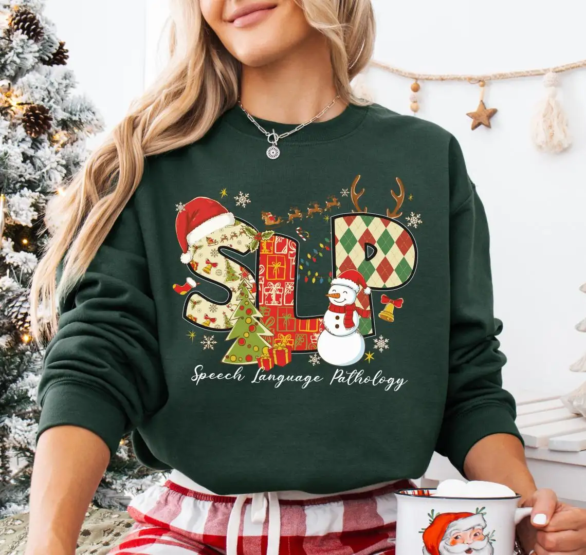 SLP Christmas Squad Sweatshirt, SLP Xmas Shirt, SLP Holiday T-Shirt, Speech Therapy Shirt, Merry Speechmas Shirt, Speech Therapist Xmas Tee