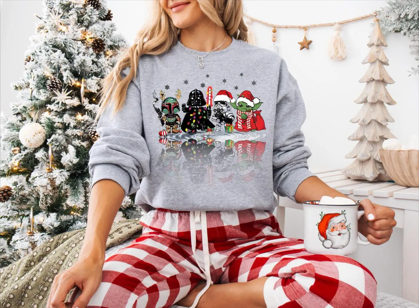 Star Wars Christmas Sweatshirt, Star Wars Characters Santa Christmas Lights Tee, Disney Star Wars Christmas Shirt, Disney Christmas Party