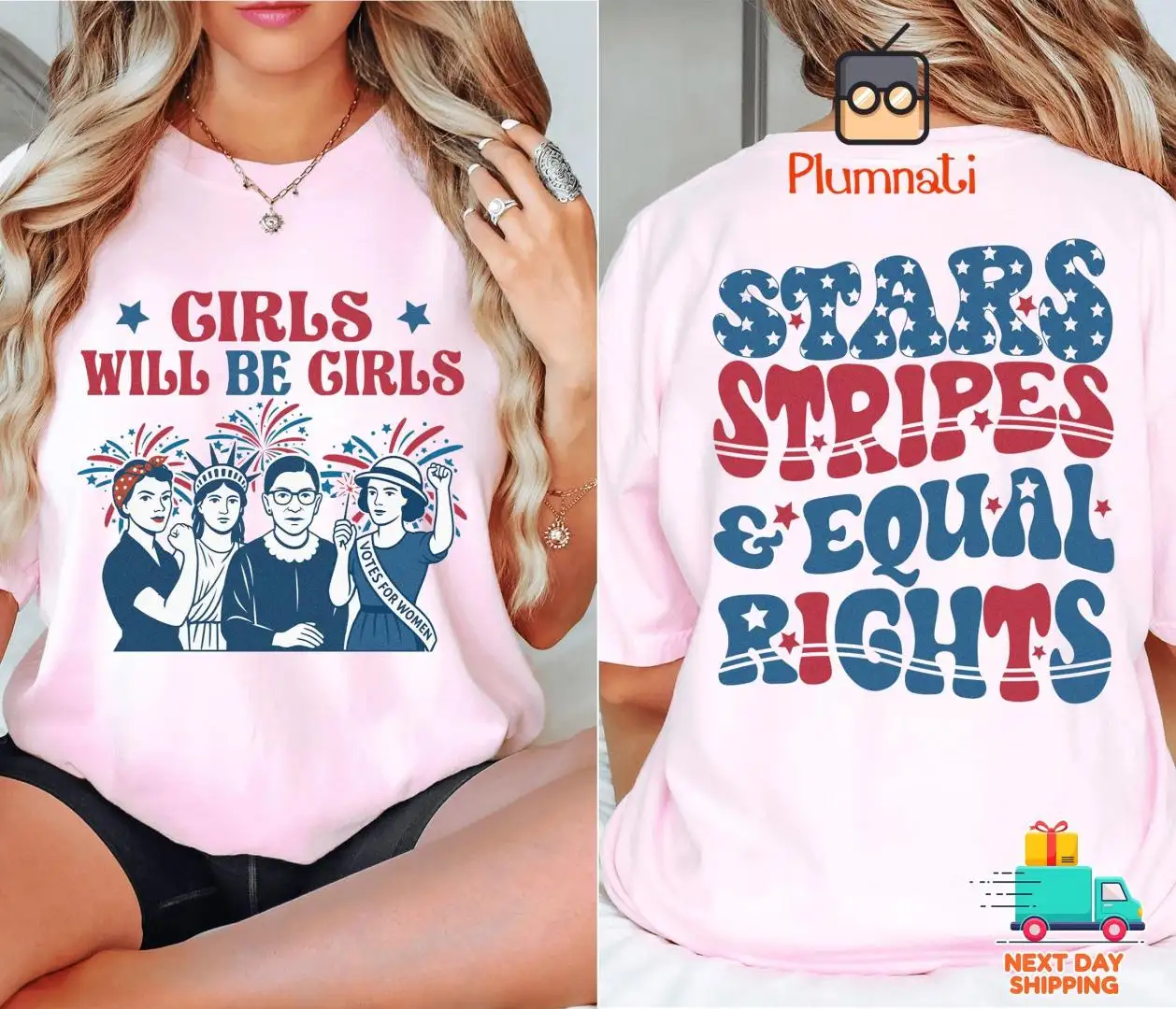 Stars Stripes and Women's Rights 4th of July Shirt Girls Will Be Girls Shirt, Patriotic 4th July Women Equal Rights Tee Feminist Shirt
