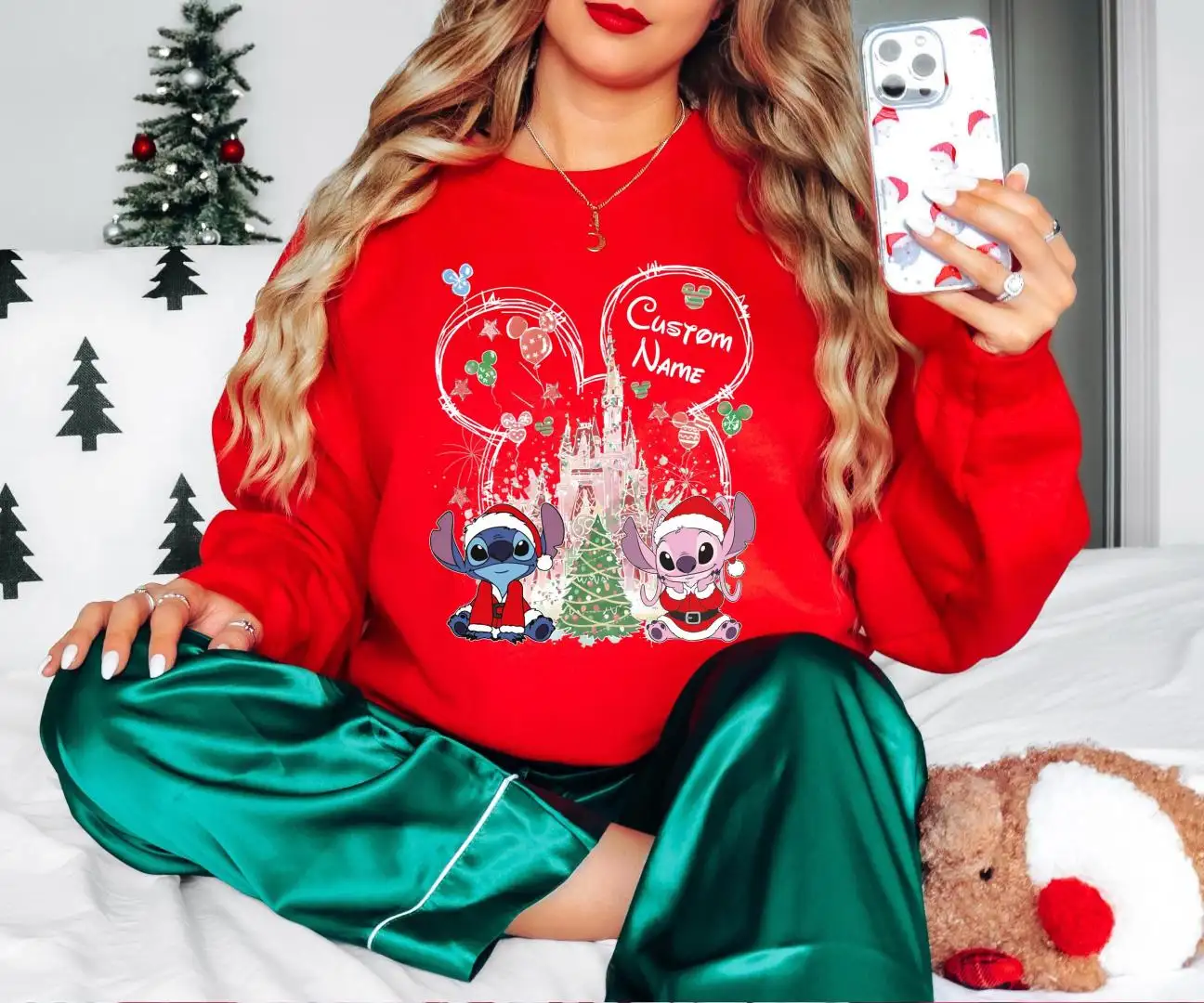 Stitch & Angel Christmas Shirt, Custom Disney Castle Sweatshirt, Stitch Toddler Xmas Trip Tee, Angel Xmas Kids Tee, Disneyland Christmas Tee