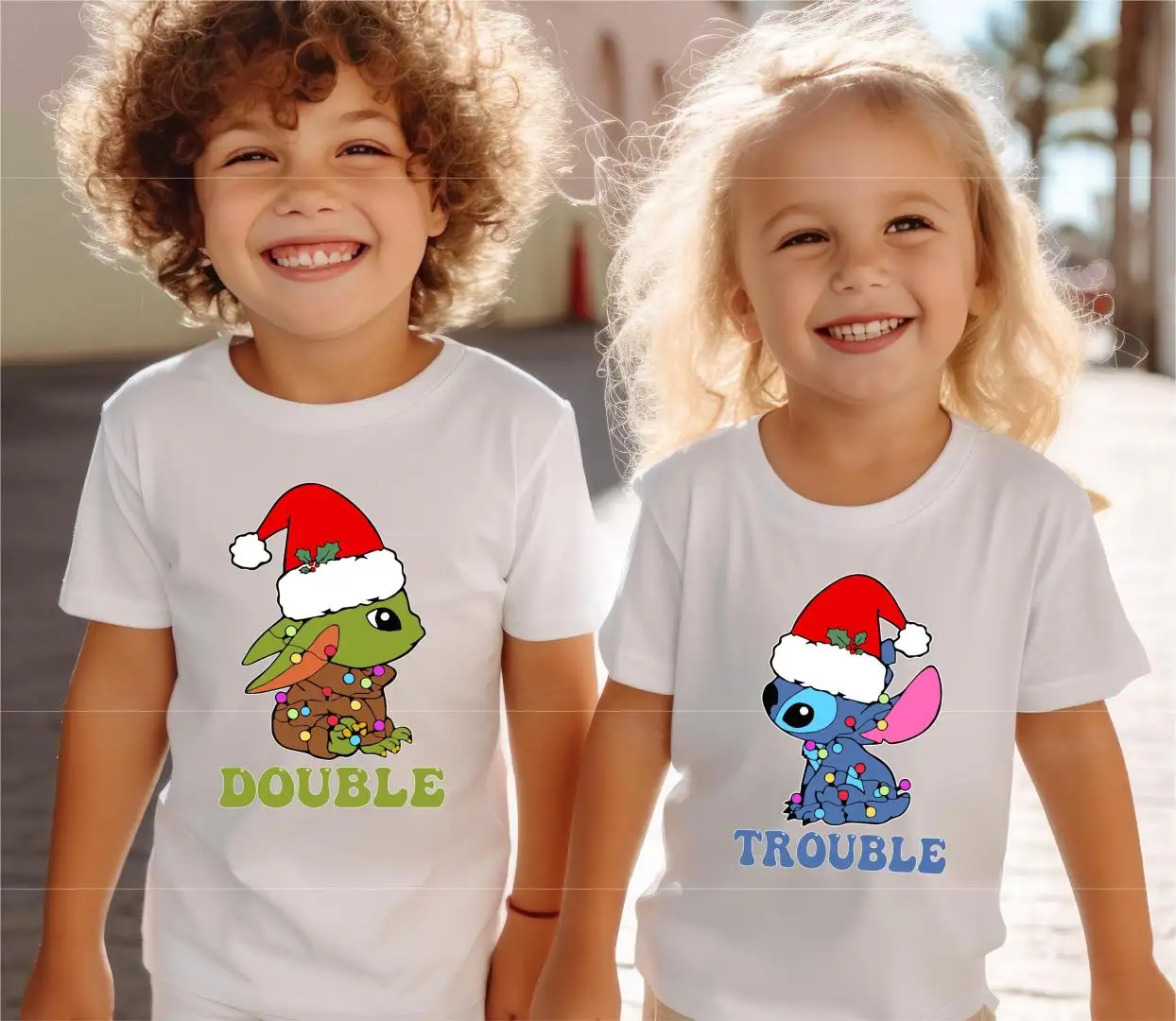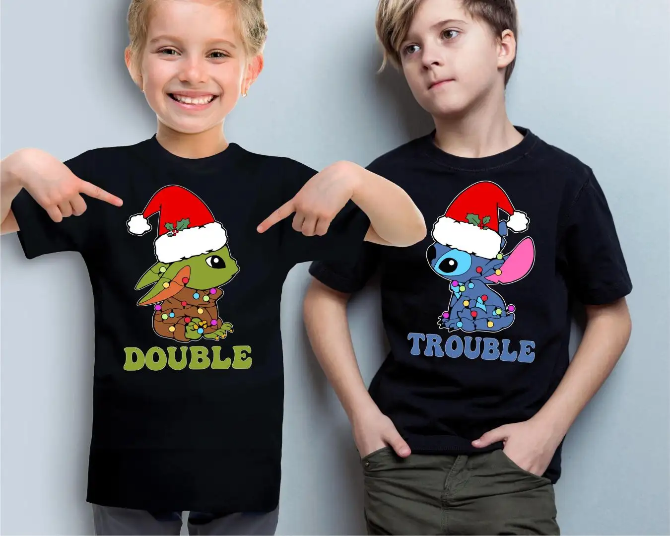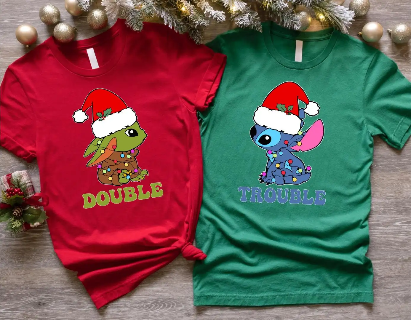 Stitch Baby Yoda Double Trouble Christmas Shirt, Disneyland Christmas Family Vacation Shirt, Disney Christmas Kids Tee, Christmas Hoodie