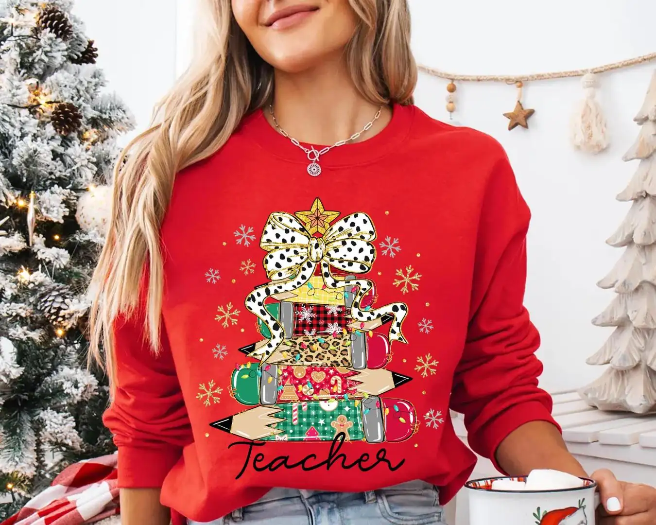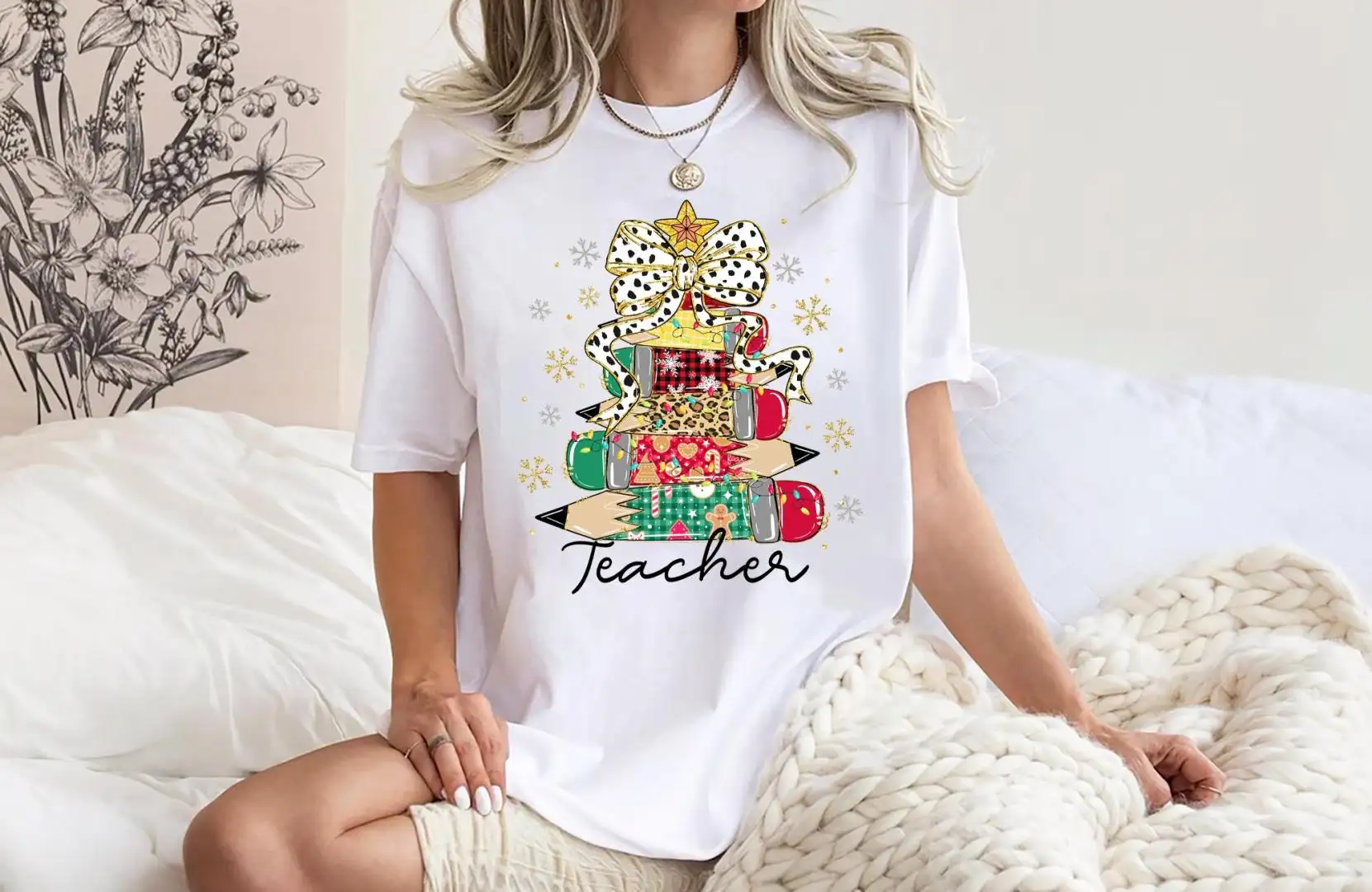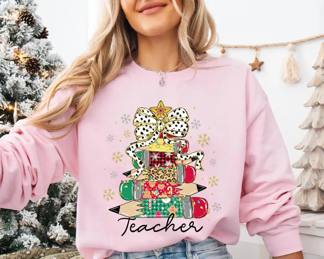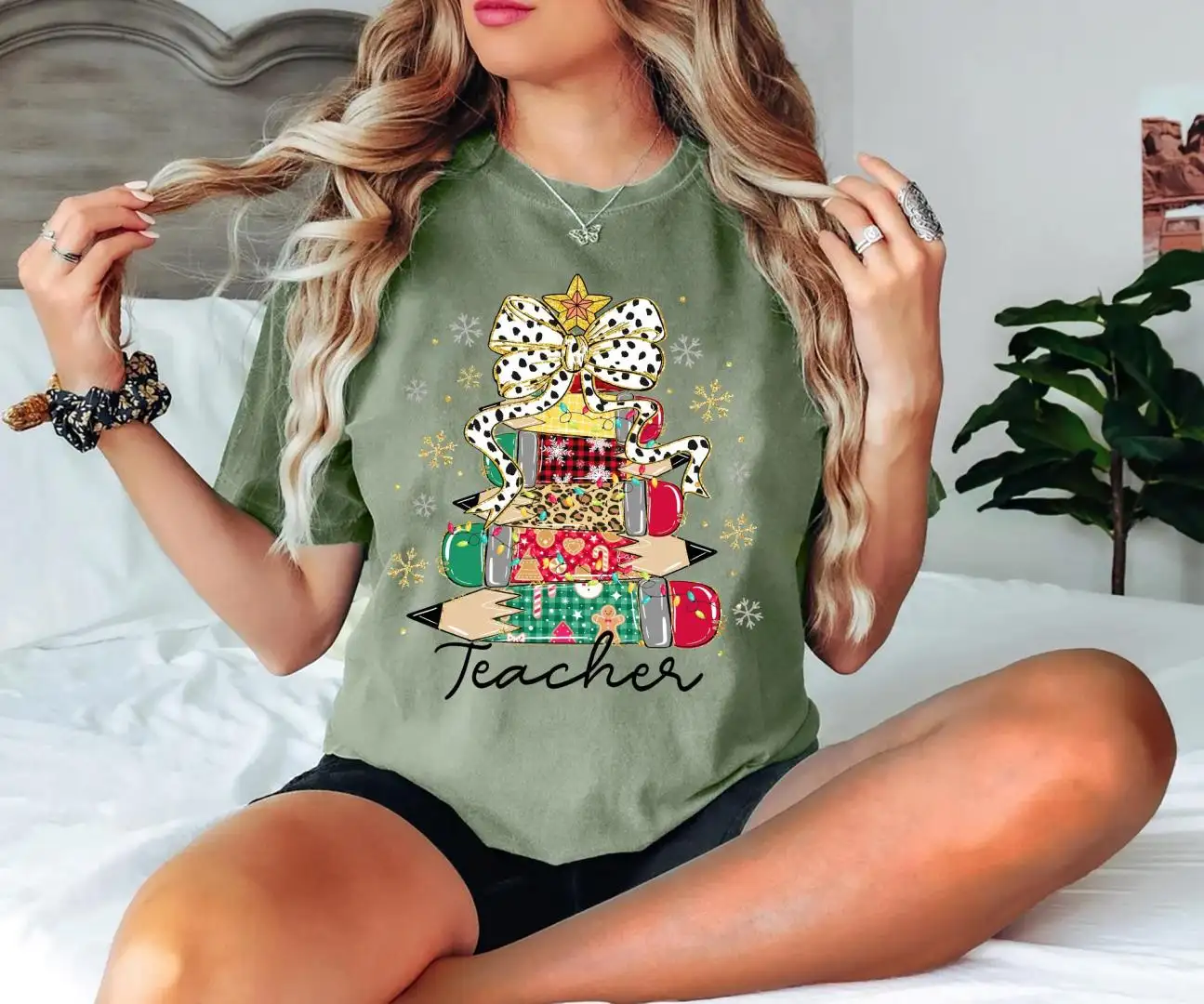 Teacher Christmas Shirt with Pencil Tree Holiday Gift