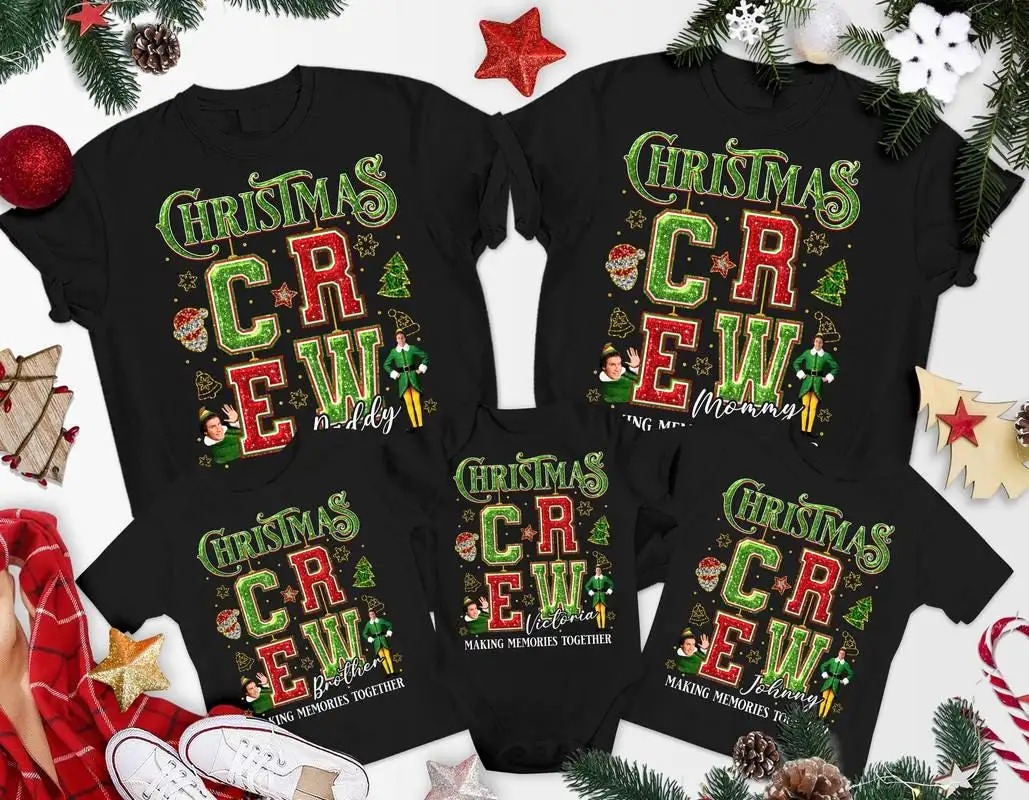 Review The Elf Christmas Crew Making Memories Together Shirt, Elf Family Christmas Shirt, Custom Christmas Elf Shirt, Family Matching Christmas Tee