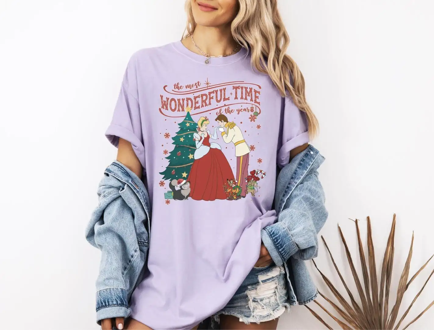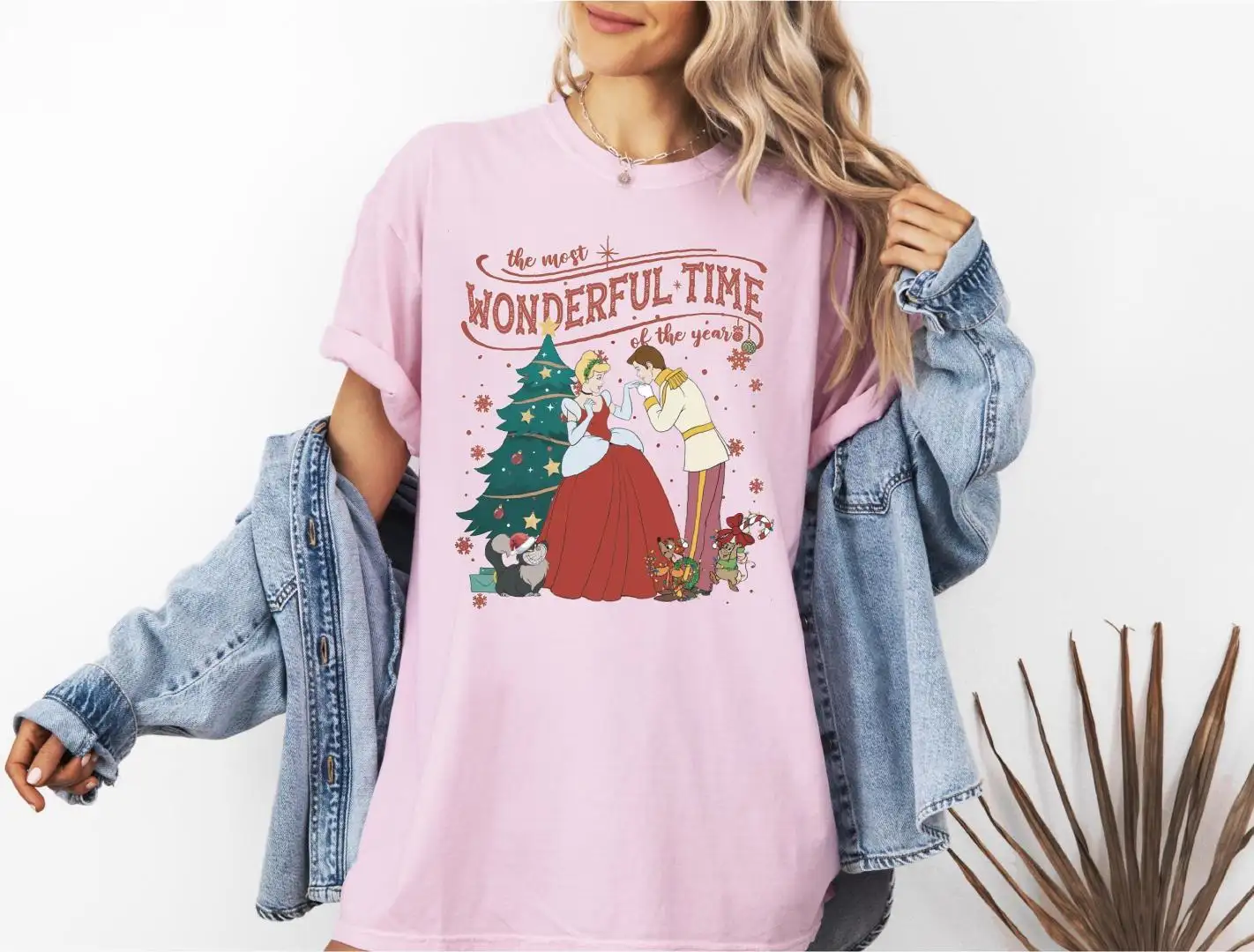 Review The Most Wonderful Time Of The Year Shirt, Comfort Colors® Cinderella And Prince Charming Christmas Shirt, Disney Girls Christmas Trip Tee