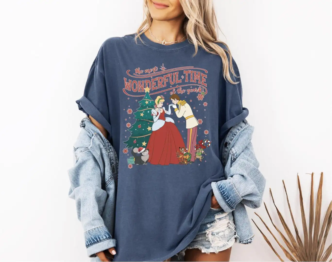 The Most Wonderful Time Of The Year Shirt, Comfort Colors® Cinderella And Prince Charming Christmas Shirt, Disney Girls Christmas Trip Tee