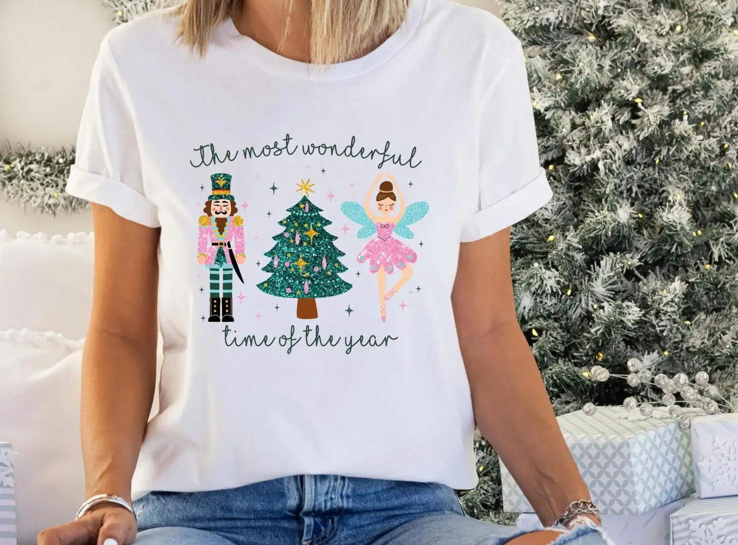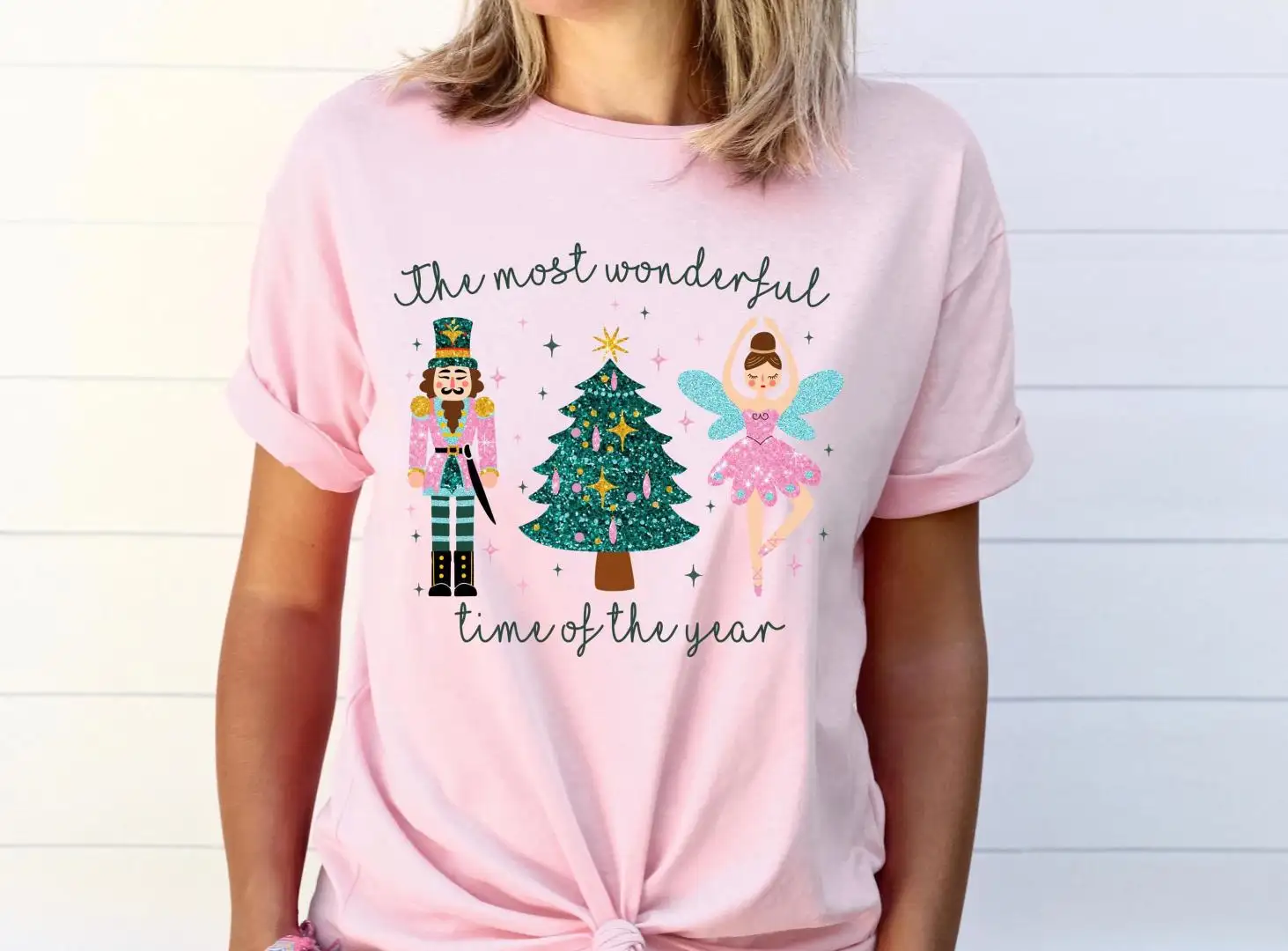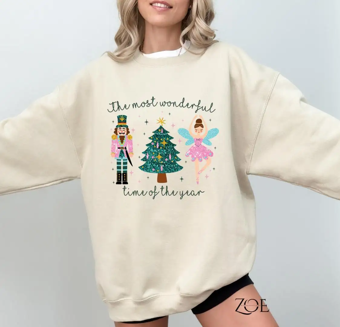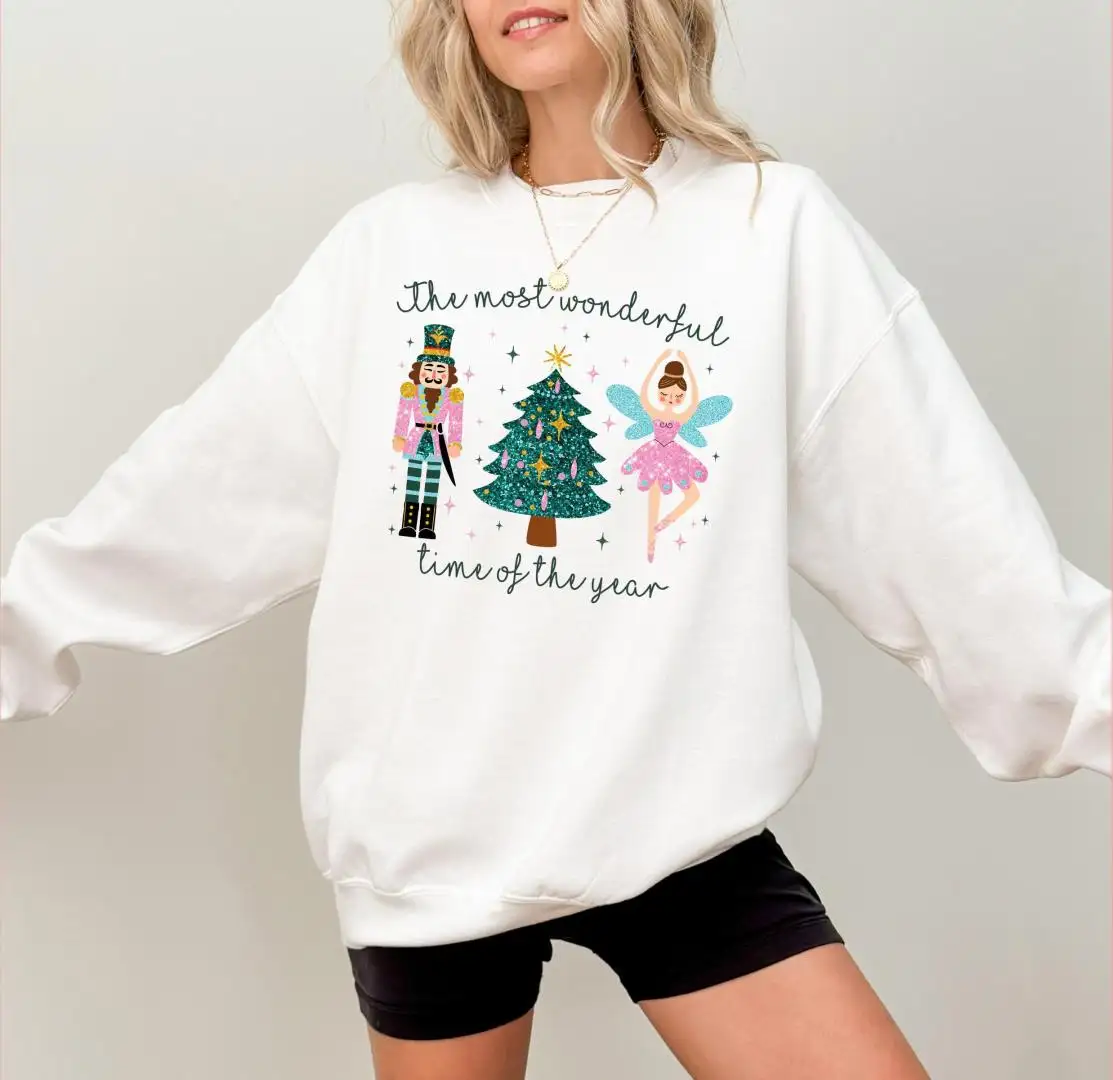 The Most Wonderful Time Of Year Sweatshirt, Pink Nutcrackers Christmas Shirt, Merry Christmas Tee, Faux Glitter Nutcrackers Sugar Plum Fairy