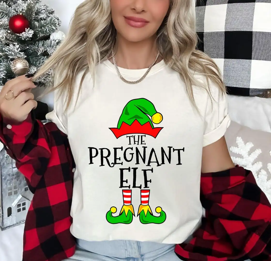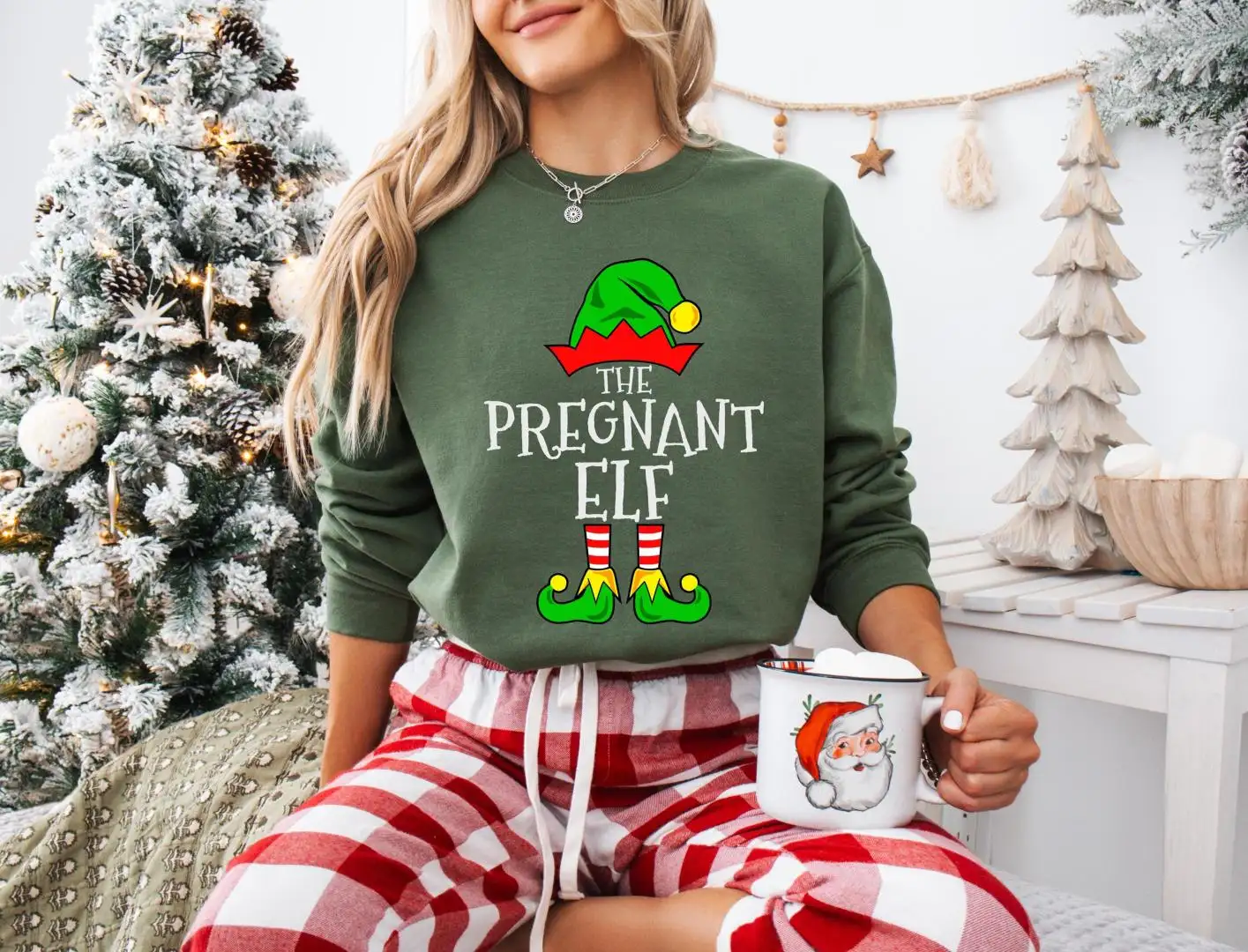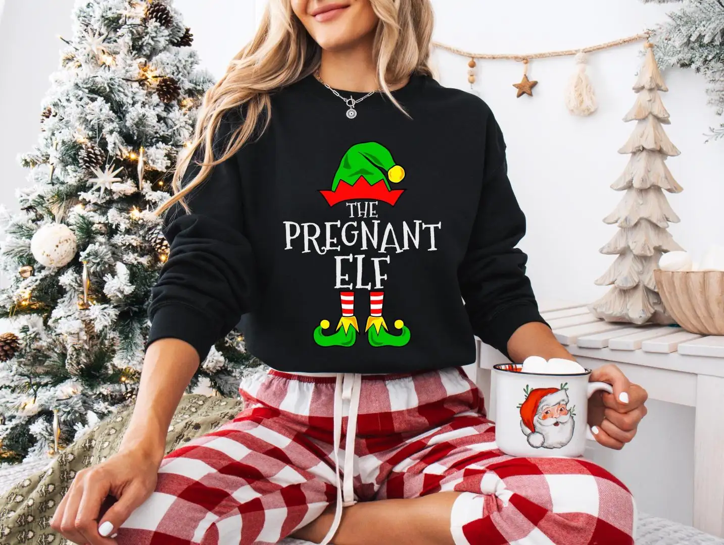 The Pregnant Elf Shirt, Baby Announcement Elf T-shirt, Elf New Mom Sweatshirt, Christmas Pregnancy Tee, Expectant Mama Christmas Gift