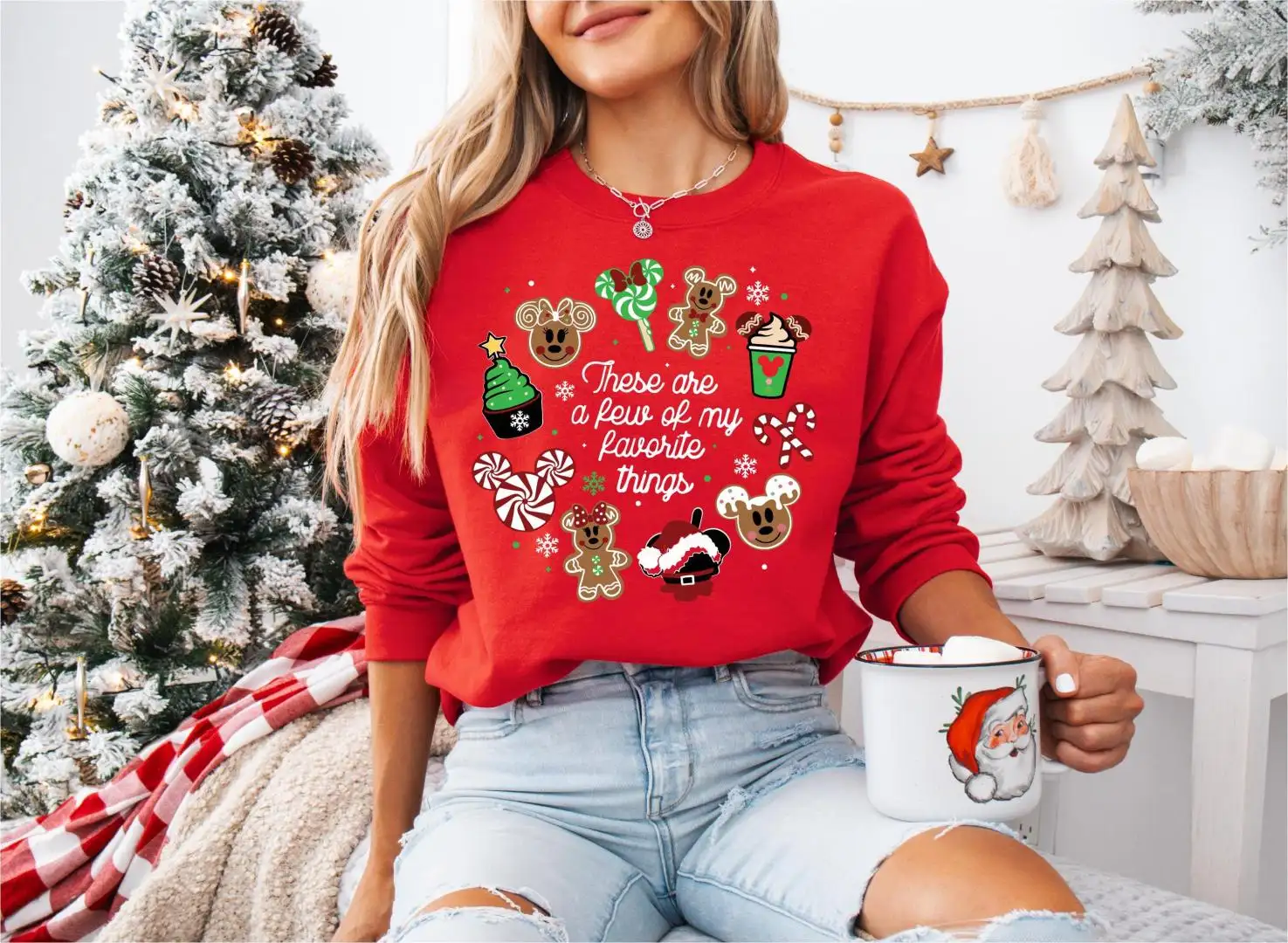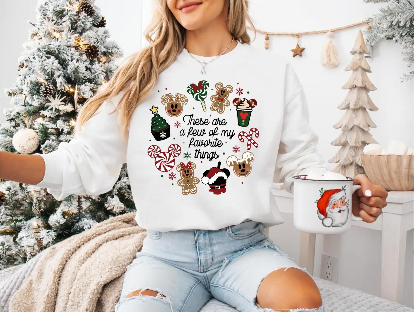 Review These Are A Few My Favorite Things Sweatshirt, Merry Christmas Shirt, Christmas Snacks T-Shirt, Xmas Family Sweater, Xmas Theme Shirt