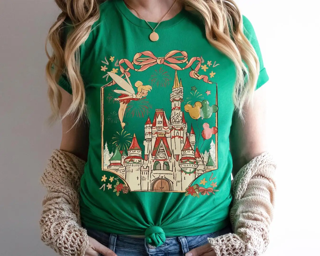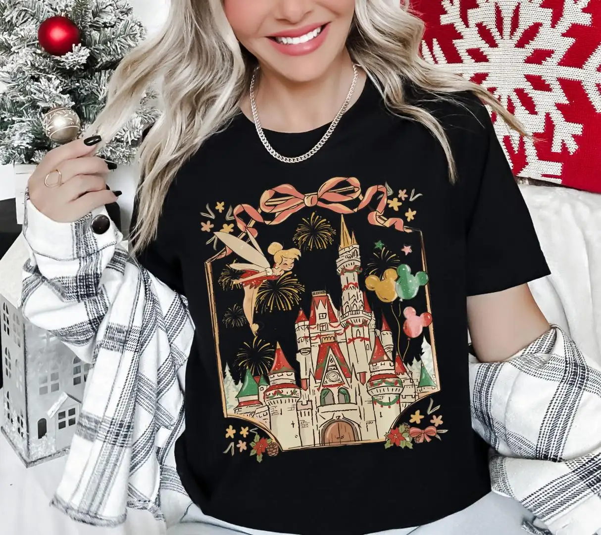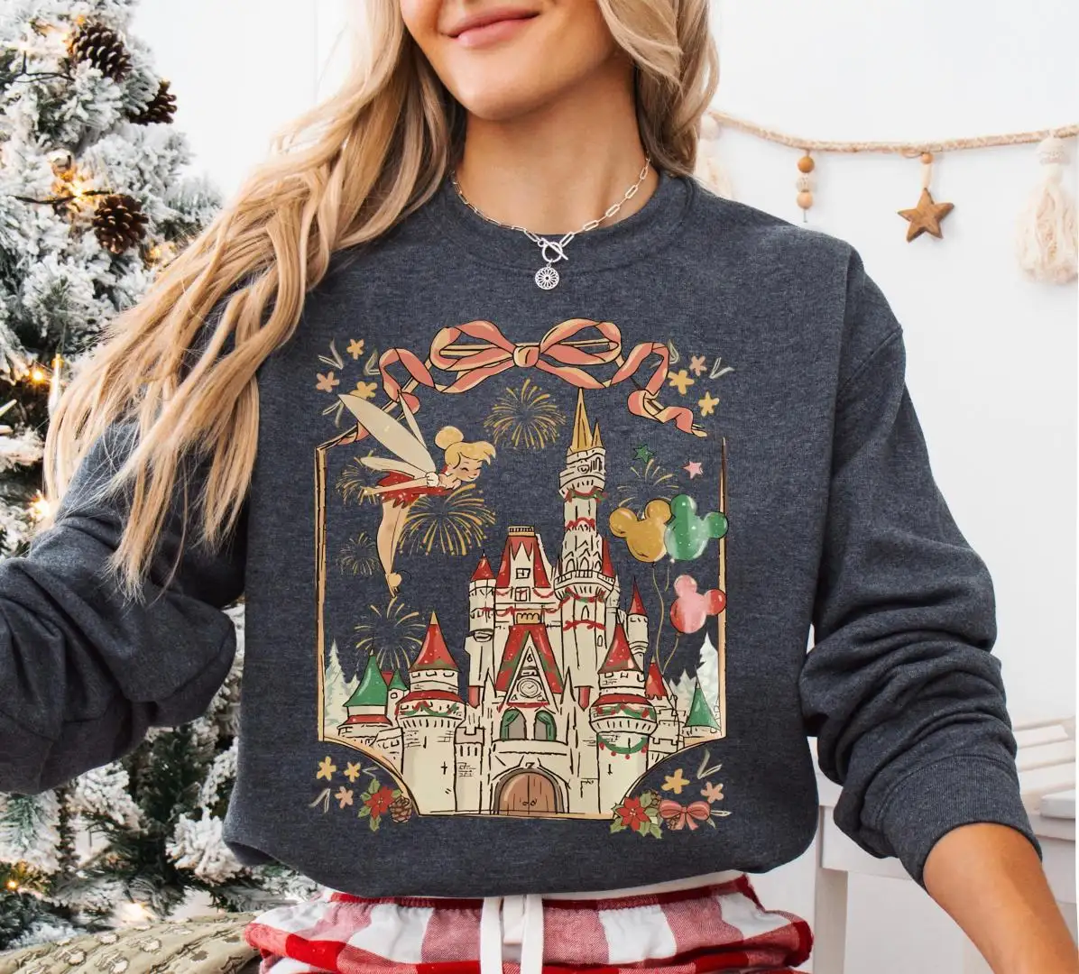 Tinker Bell Christmas Coquette Bow Sweatshirt, Girls Xmas Trip Shirt, Disneyland Castle Christmas Tee, Disney Fairy Neverland Xmas T-Shirt