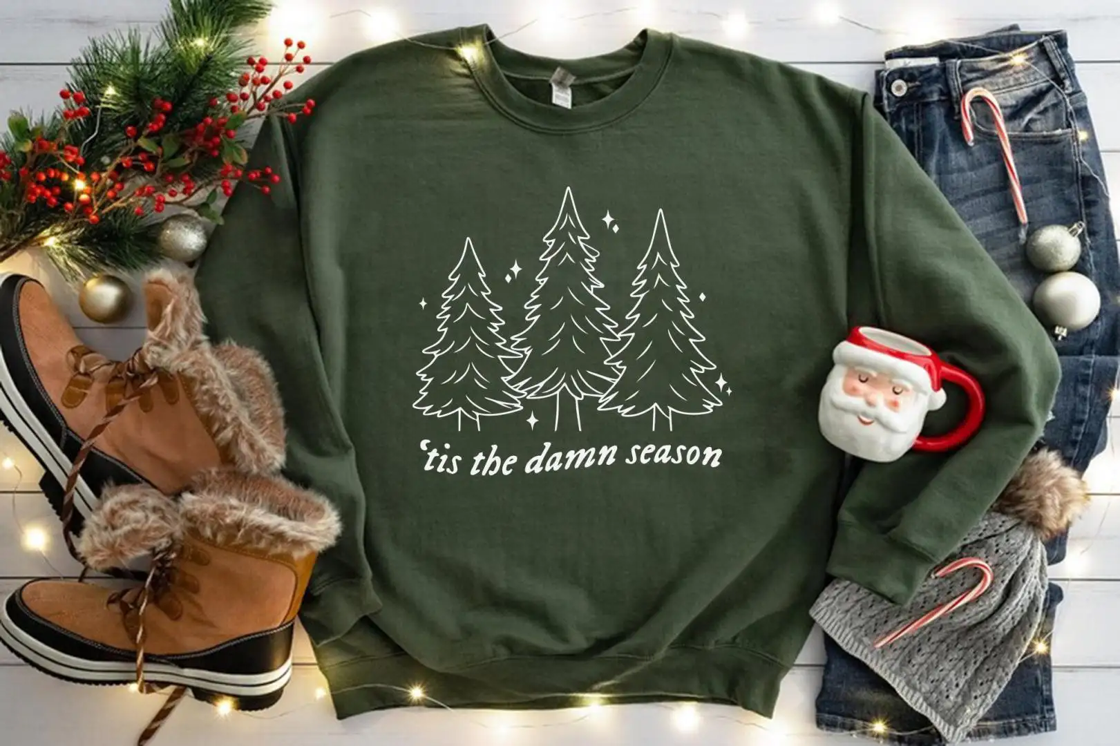 Tis The Damn Season Christmas Tree Shirt, Merry Christmas Sweatshirt, Holiday Party Sweater, Christmas Tree Shirt, Ugly Christmas Shirt