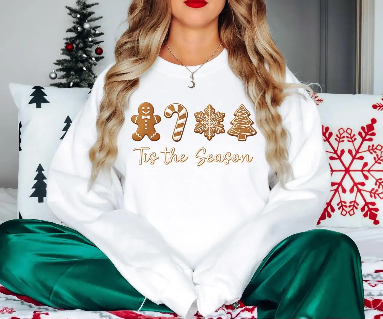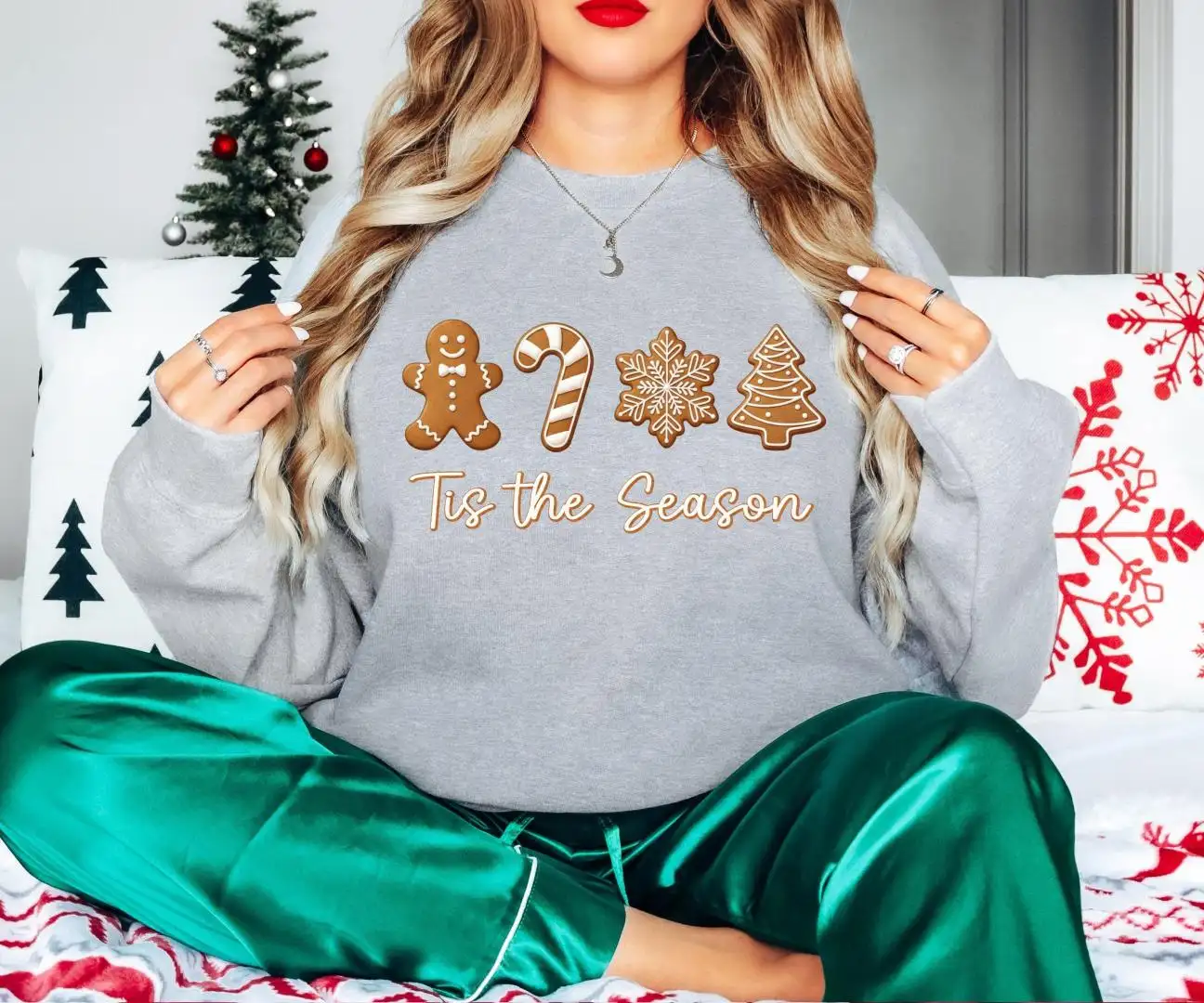 Tis The Season Christmas Sweatshirt, Christmas Tree Tee, Christmas Party Tee, Very Merry Christmas Gift, Gingerbread Cookie Xmas T-Shirt