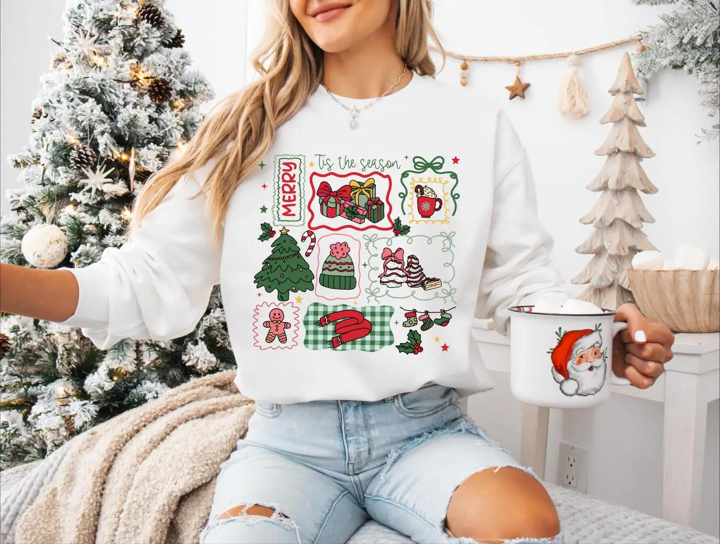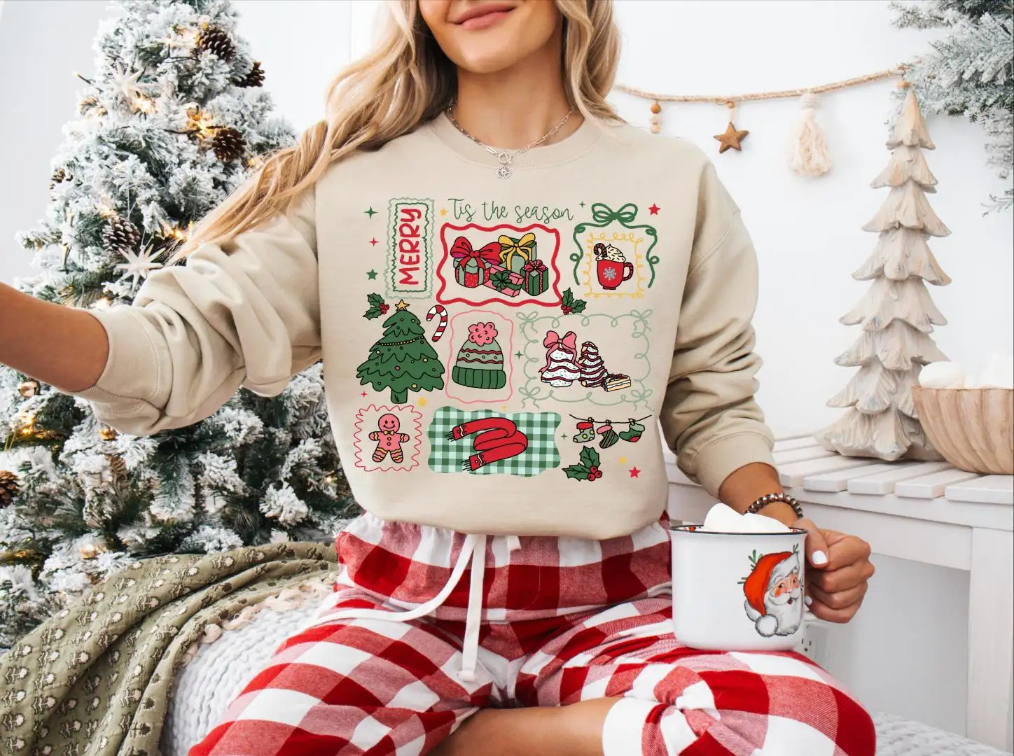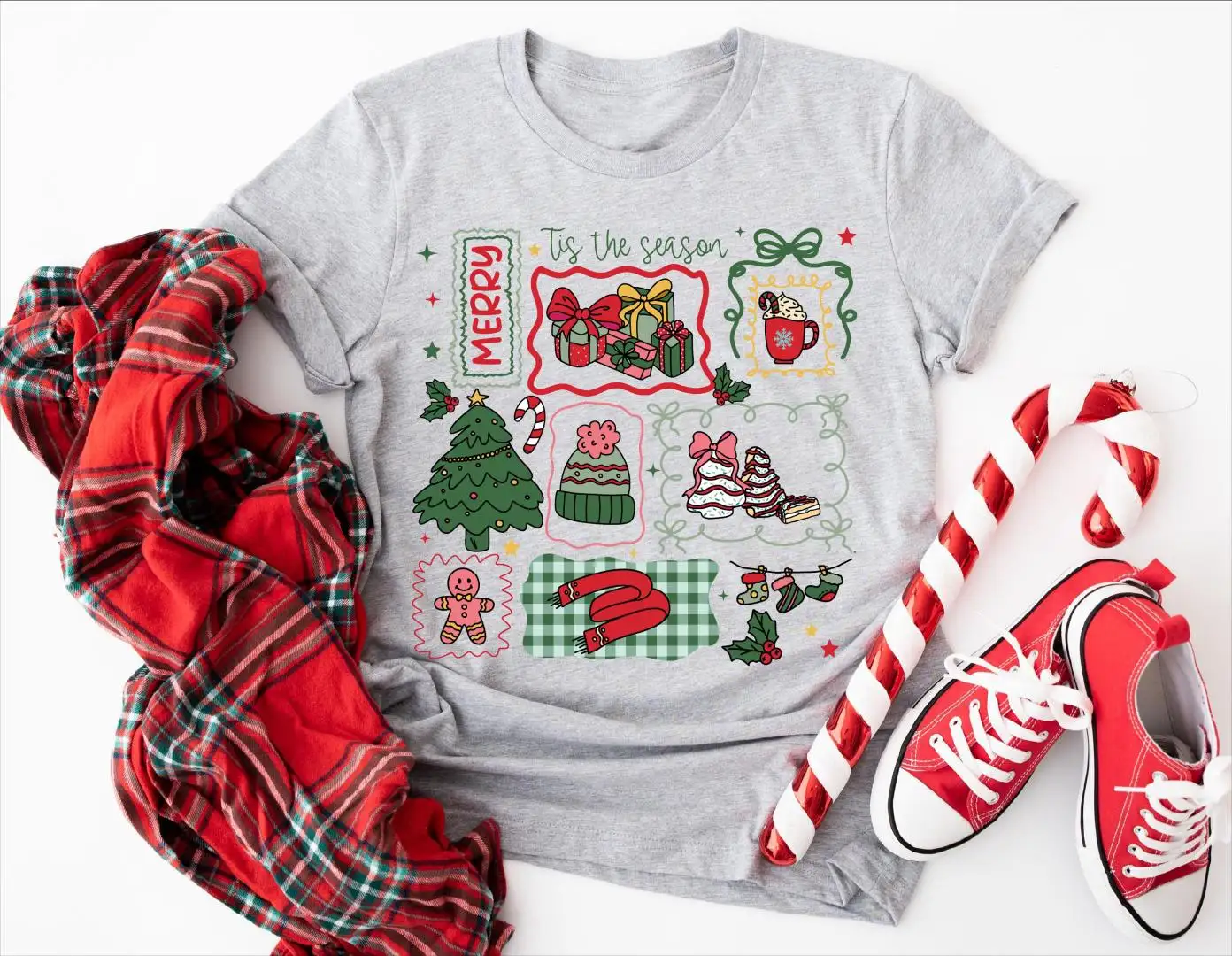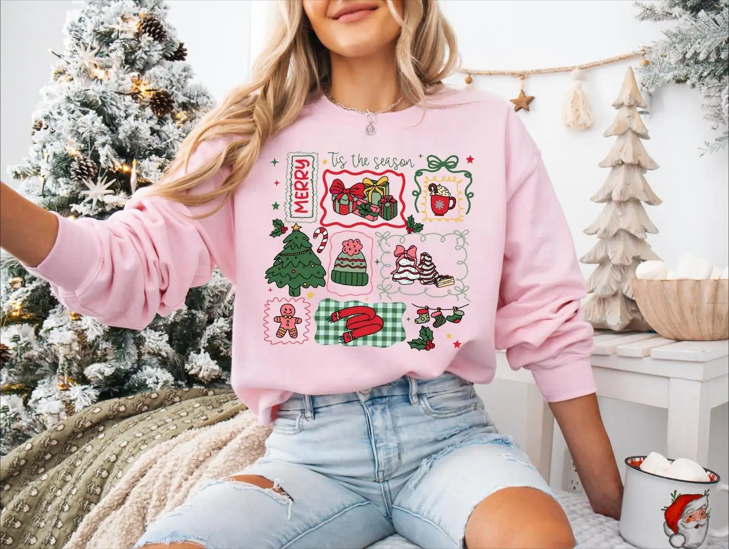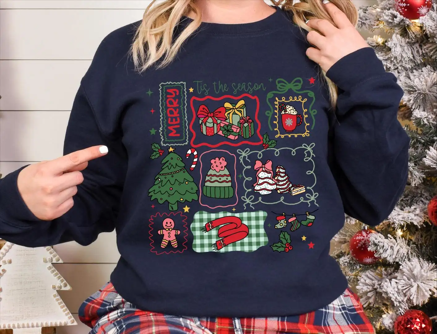 Tis The Season Christmas Vibes Shirt, Merry Christmas Sweatshirt, Winter Christmas Objects Sweater, Merry and Bright, Christmas Party Tee