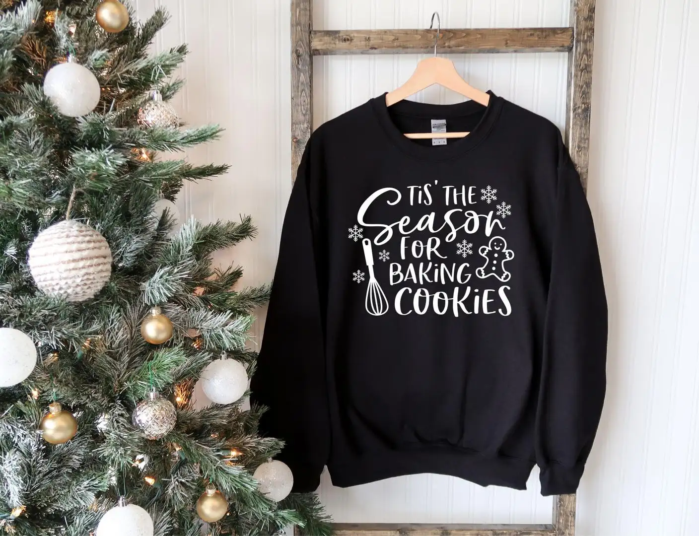 Review Tis The Season For Baking Cookies Sweatshirt / Christmas Baking Sweatshirt / Christmas Cookies Sweater / Holiday Sweatshirt /Merry Christmas