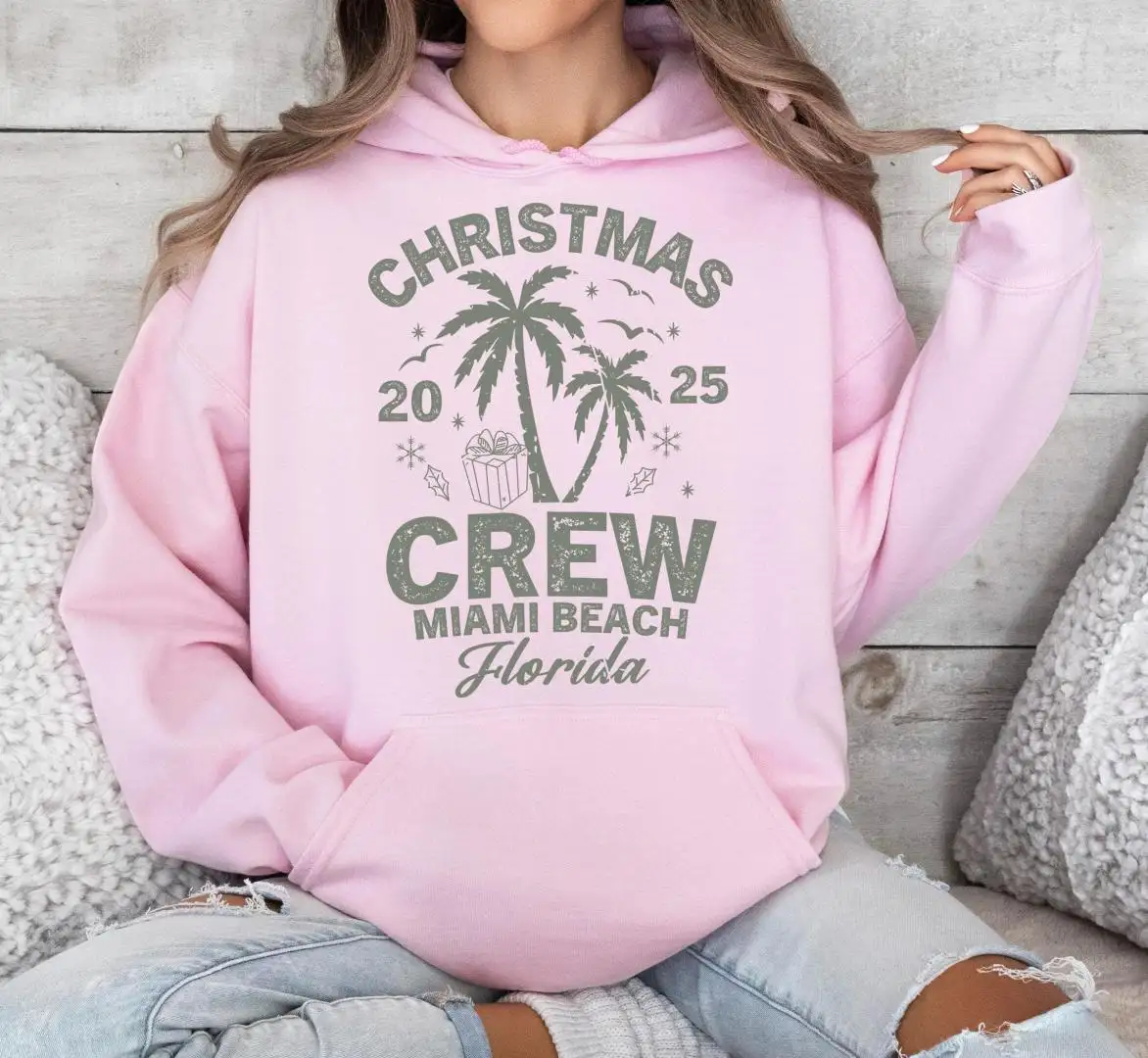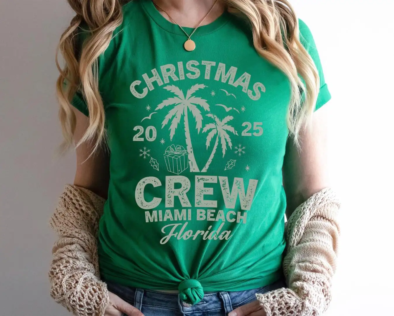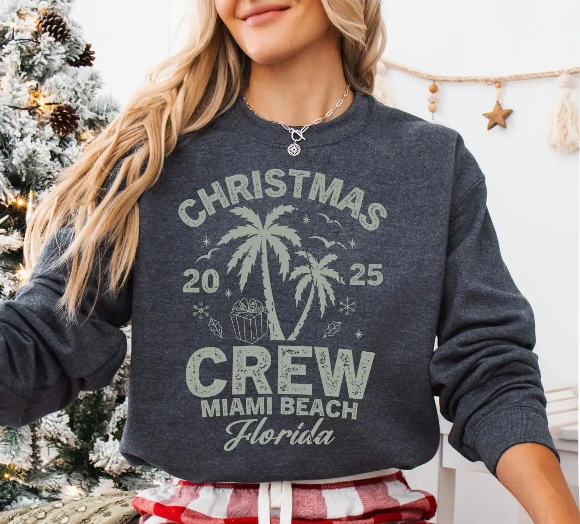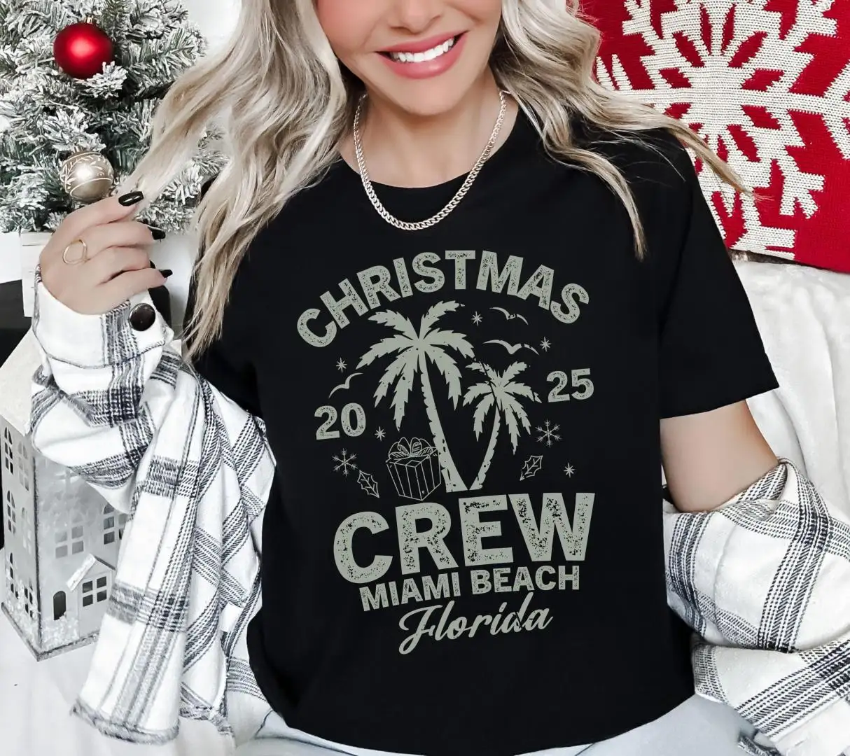 Tropical Christmas Crew 2025 Shirt, Family Holiday Shirt, Beach Christmas Vibes T-Shirt, Miami Beach Xmas T-Shirt, Christmas Tree Sweatshirt