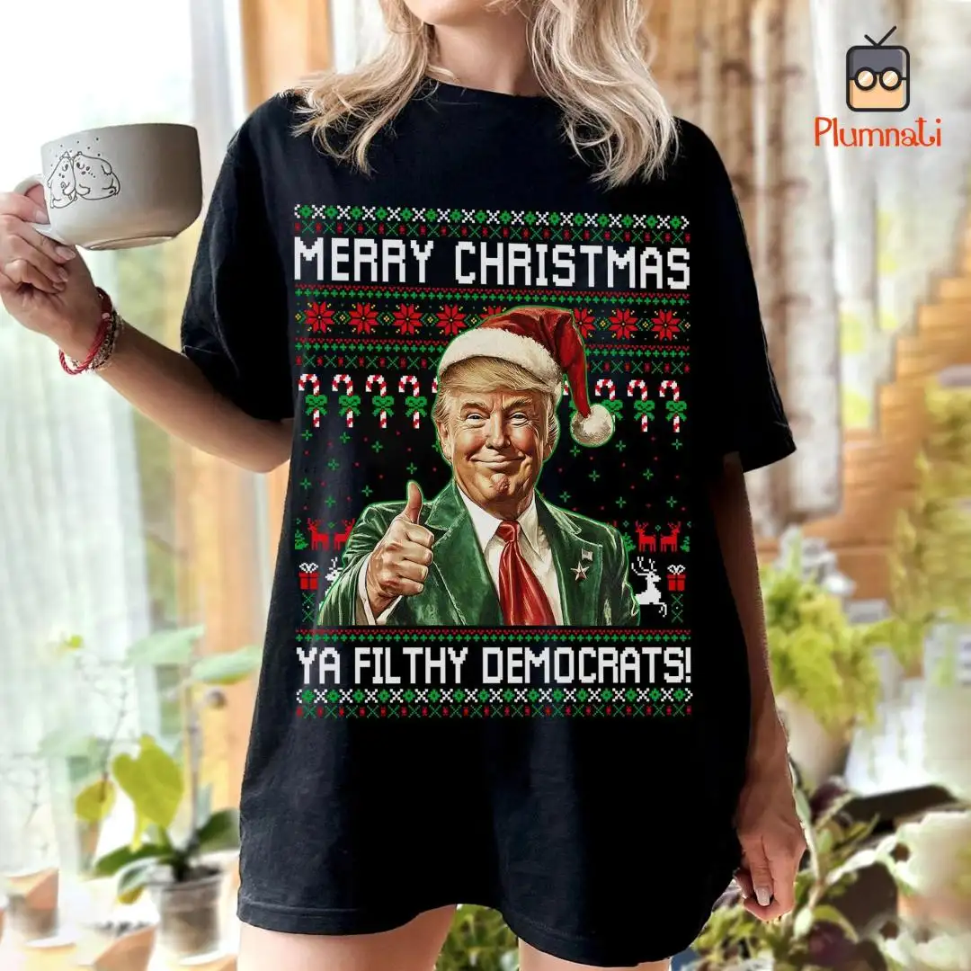 Trump Merry Christmas Ya Filthy Democrats Trump Christmas Sweatshirt, Christmas Trump Shirt, Donald Trump Ya Filthy Democrats Shirt