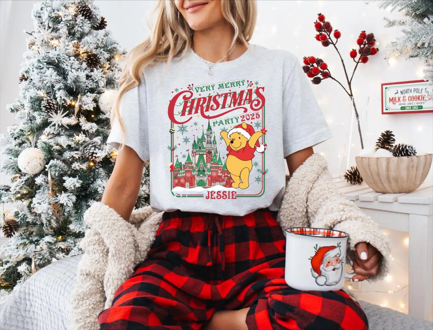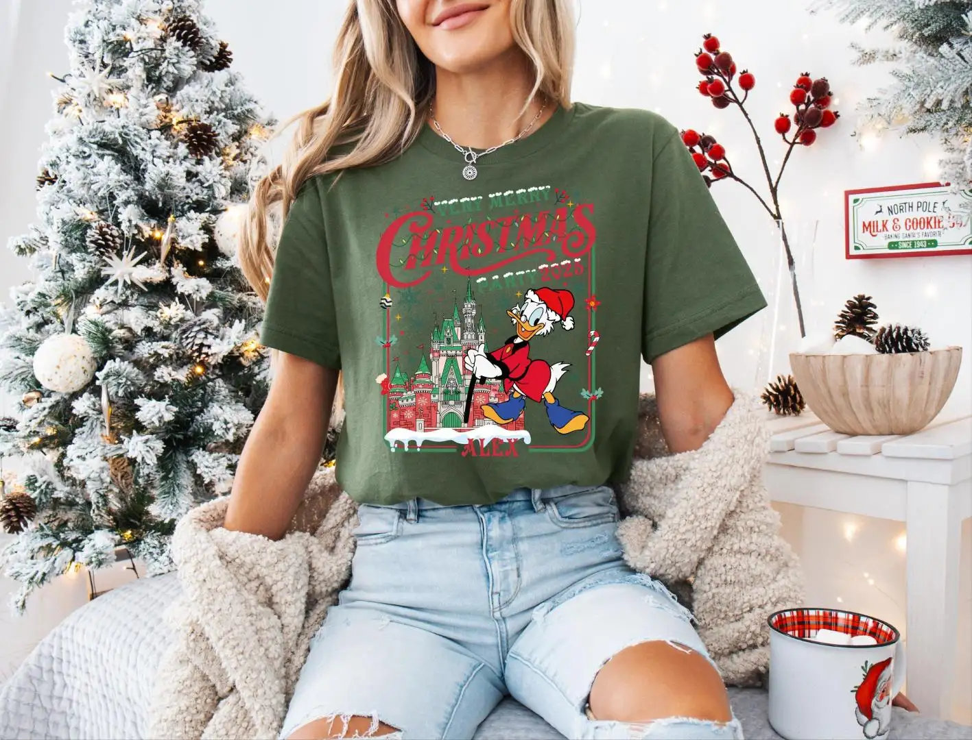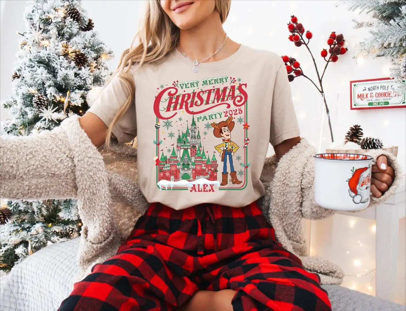 Very Merry Christmas Party 2025 Disney Characters Shirt, Disney World Christmas Castle Custom Tee, Disney Matching Family Xmas Sweater