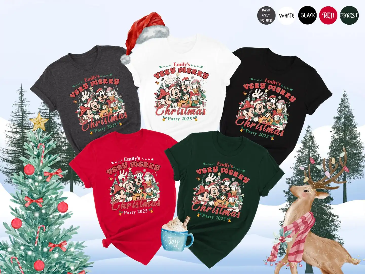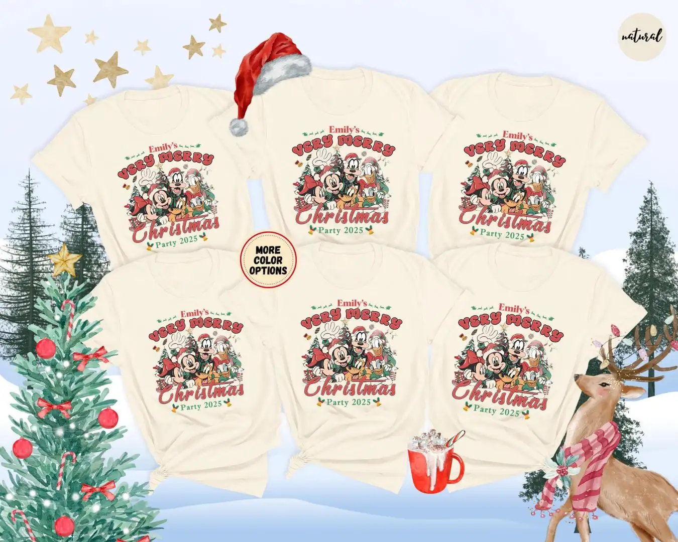 Very Merry Christmas Party 2025 Matching Family Shirt, Personalized Disney Trip Shirts, Custom Group Holiday Apparel for Festive Events