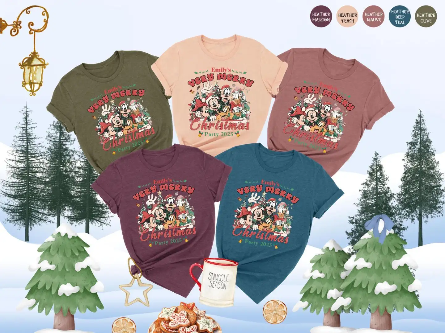 Review Very Merry Christmas Party 2025 Matching Family Shirt, Personalized Disney Trip Shirts, Custom Group Holiday Apparel for Festive Events
