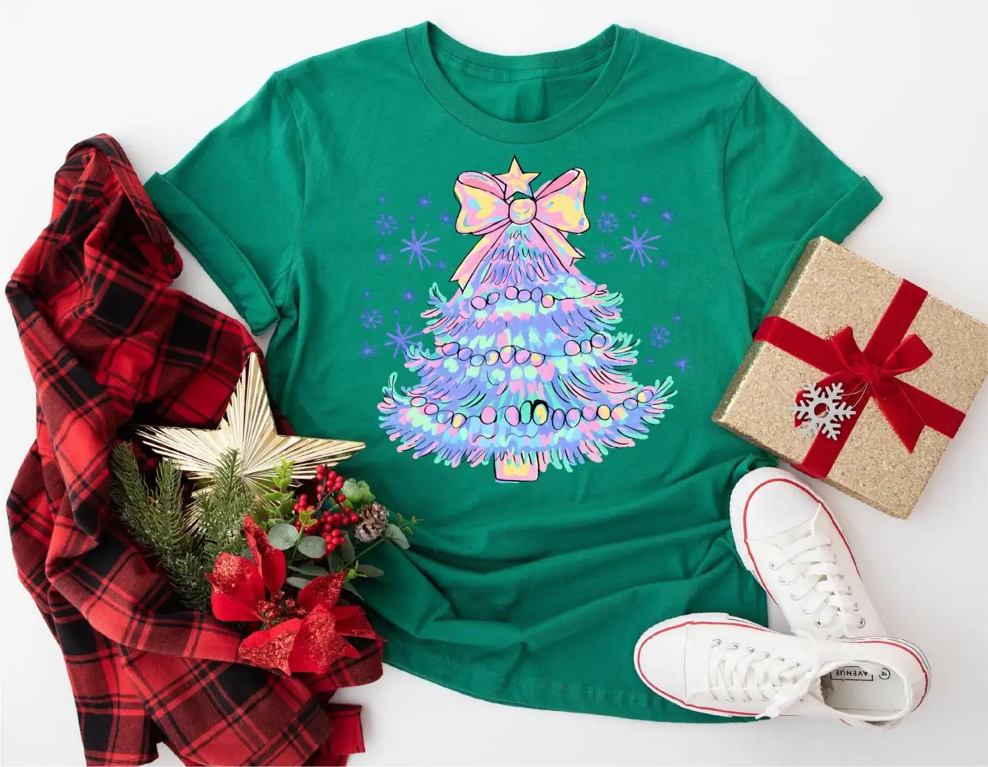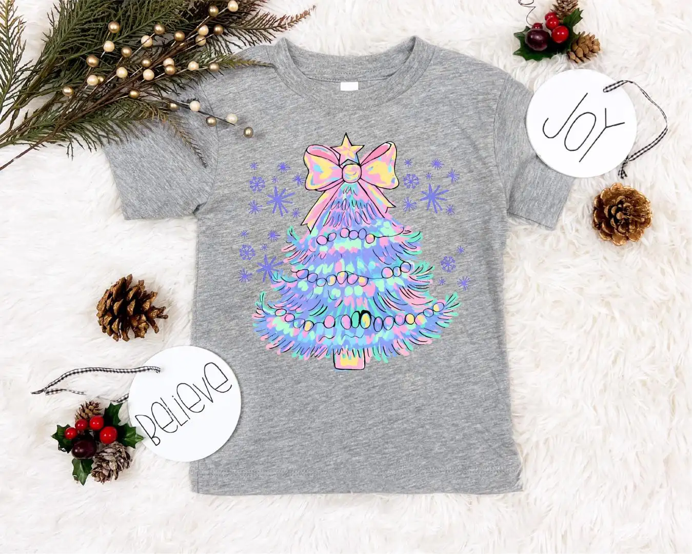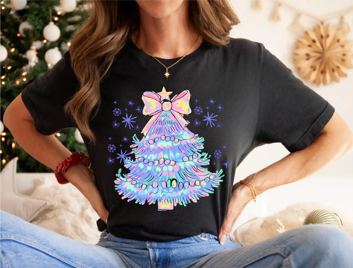 Vibrant Watercolor Christmas Tree Shirt, Holiday Party Sweater, Christmas Tree Shirt, Girls Christmas Shirt, Merry Christmas Sweatshirt