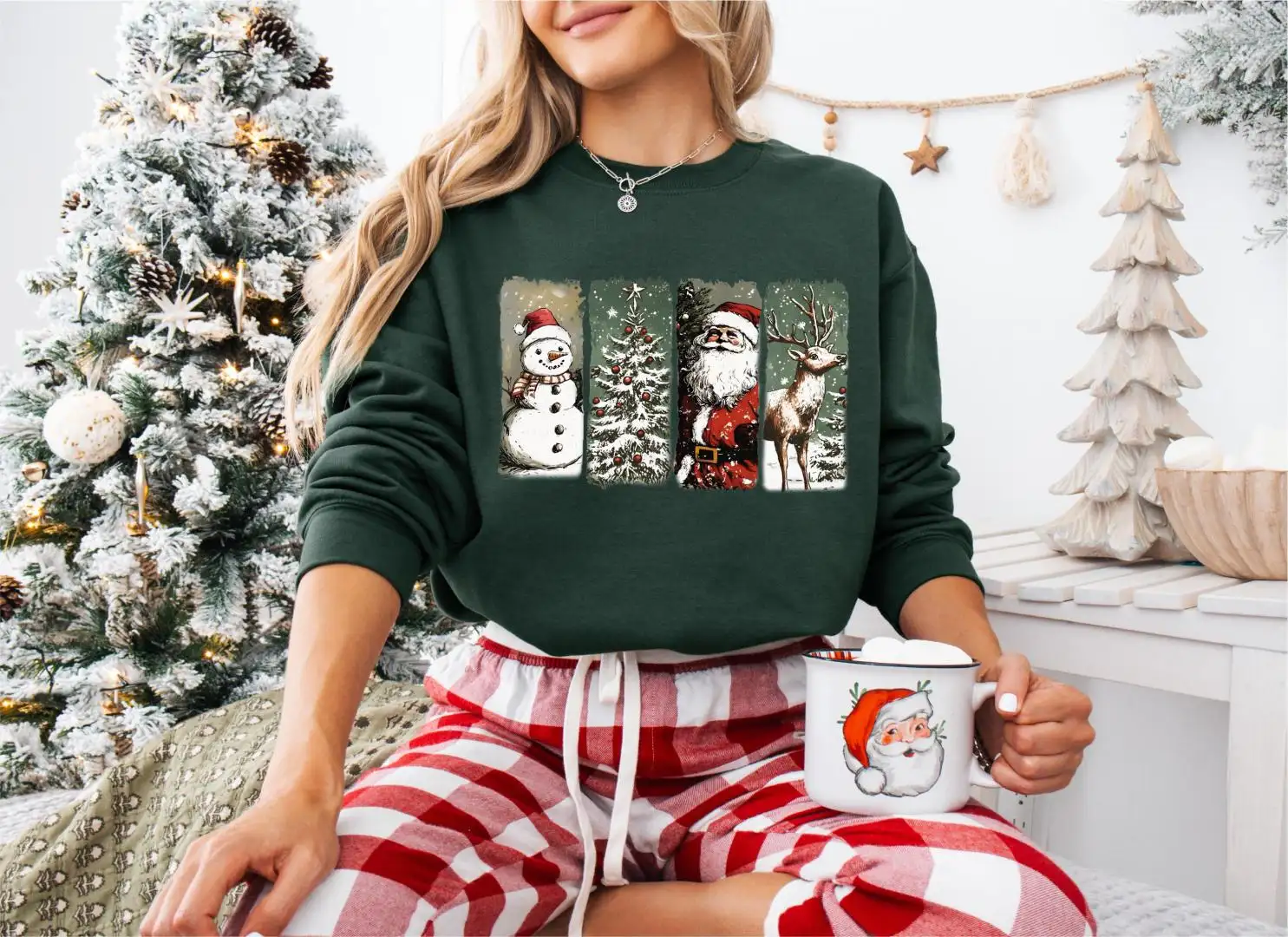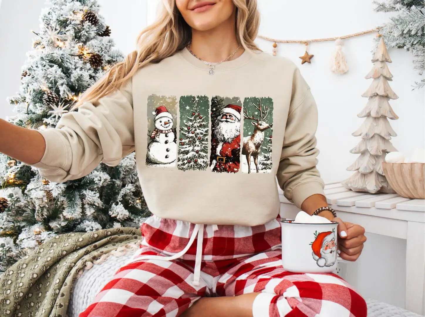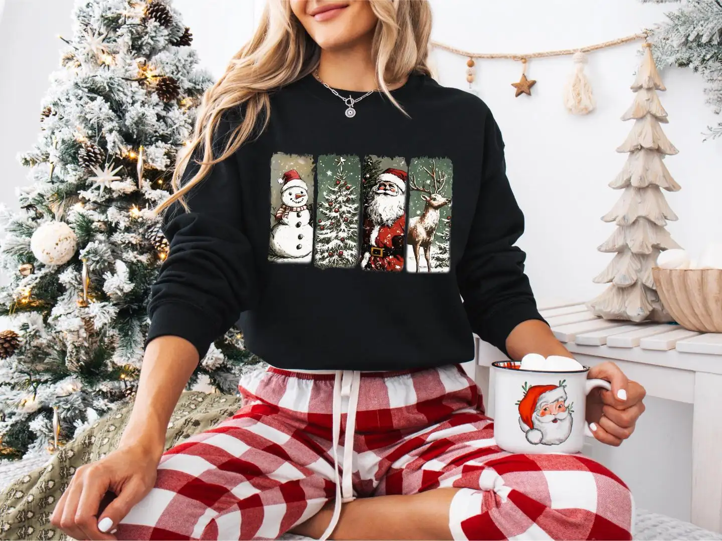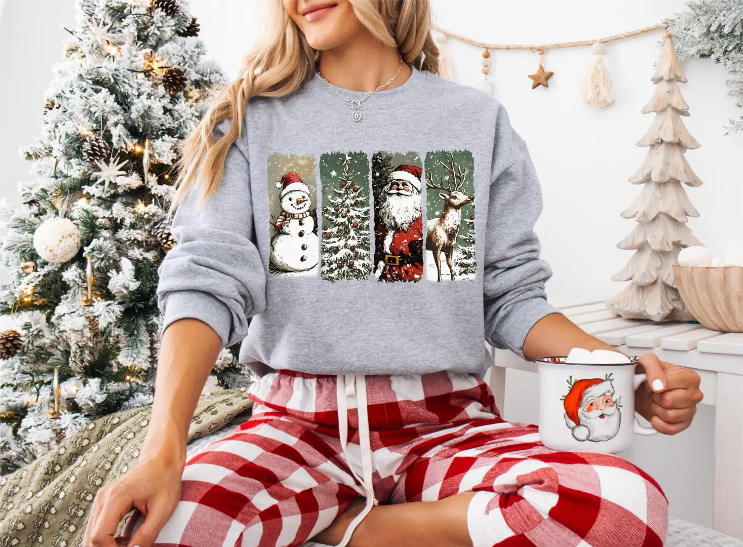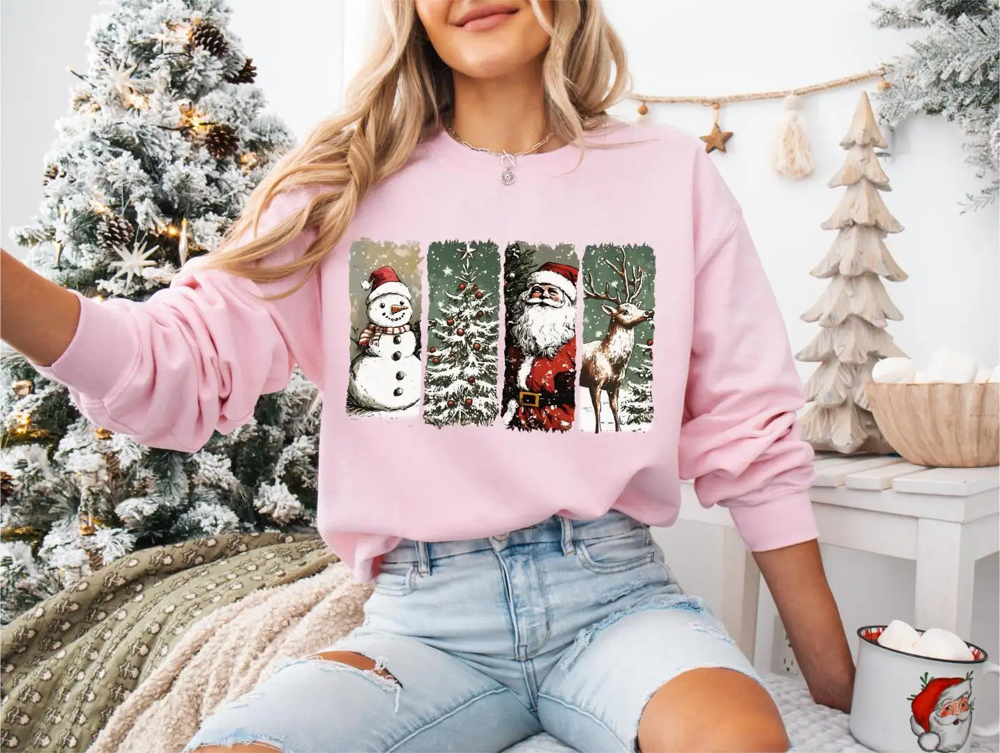 Review Vintage Christmas Santa Snowman Graphic Shirt