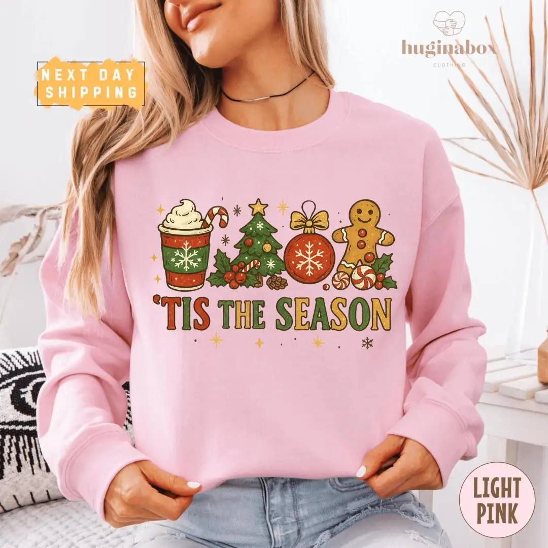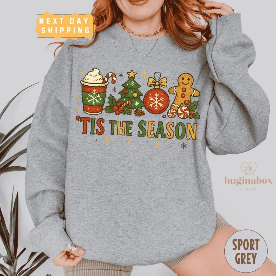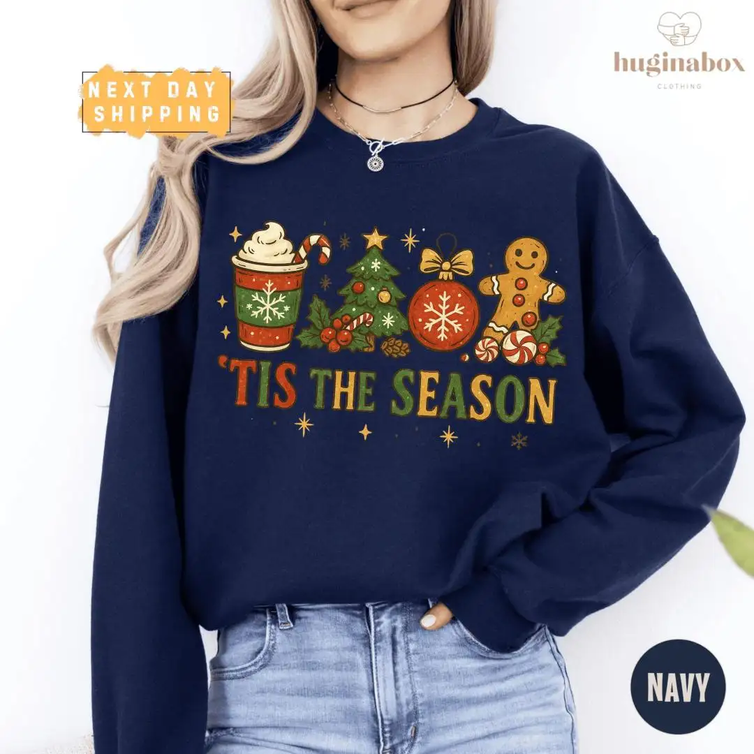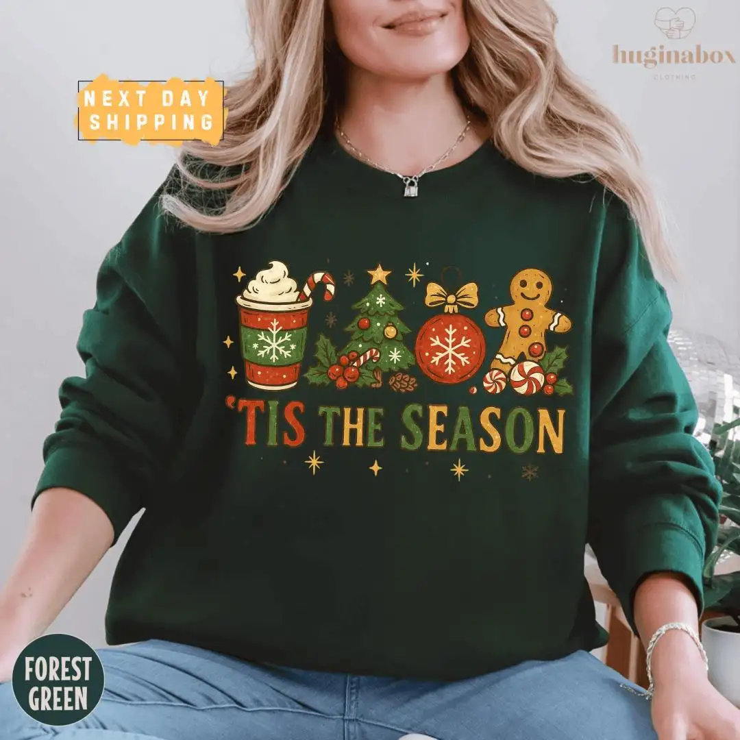 Vintage Christmas Shirt with Gingerbread & Tree Design