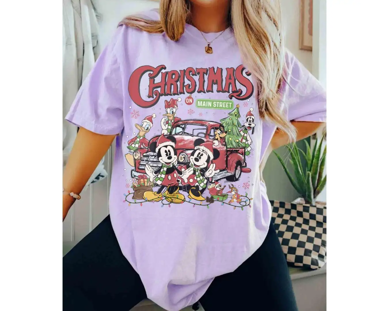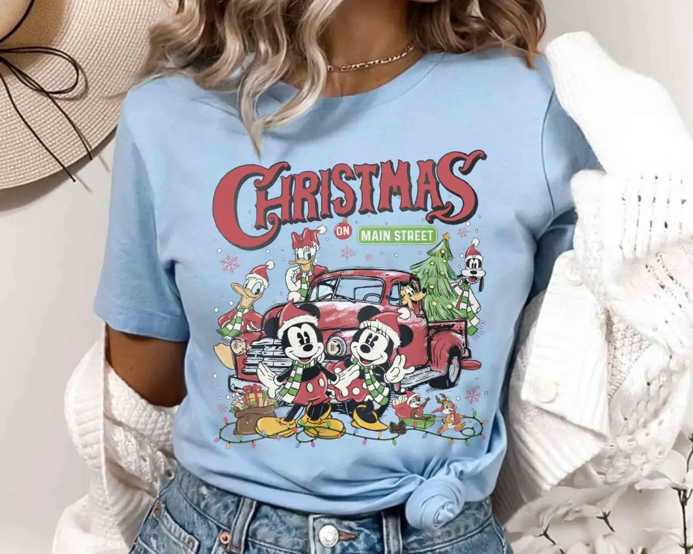 Vintage Disney Christmas On Main Street Shirt, Disney Christmas Trip Shirt, Christmas Party 2025 Shirt, Mickey and Friends Christmas Shirt