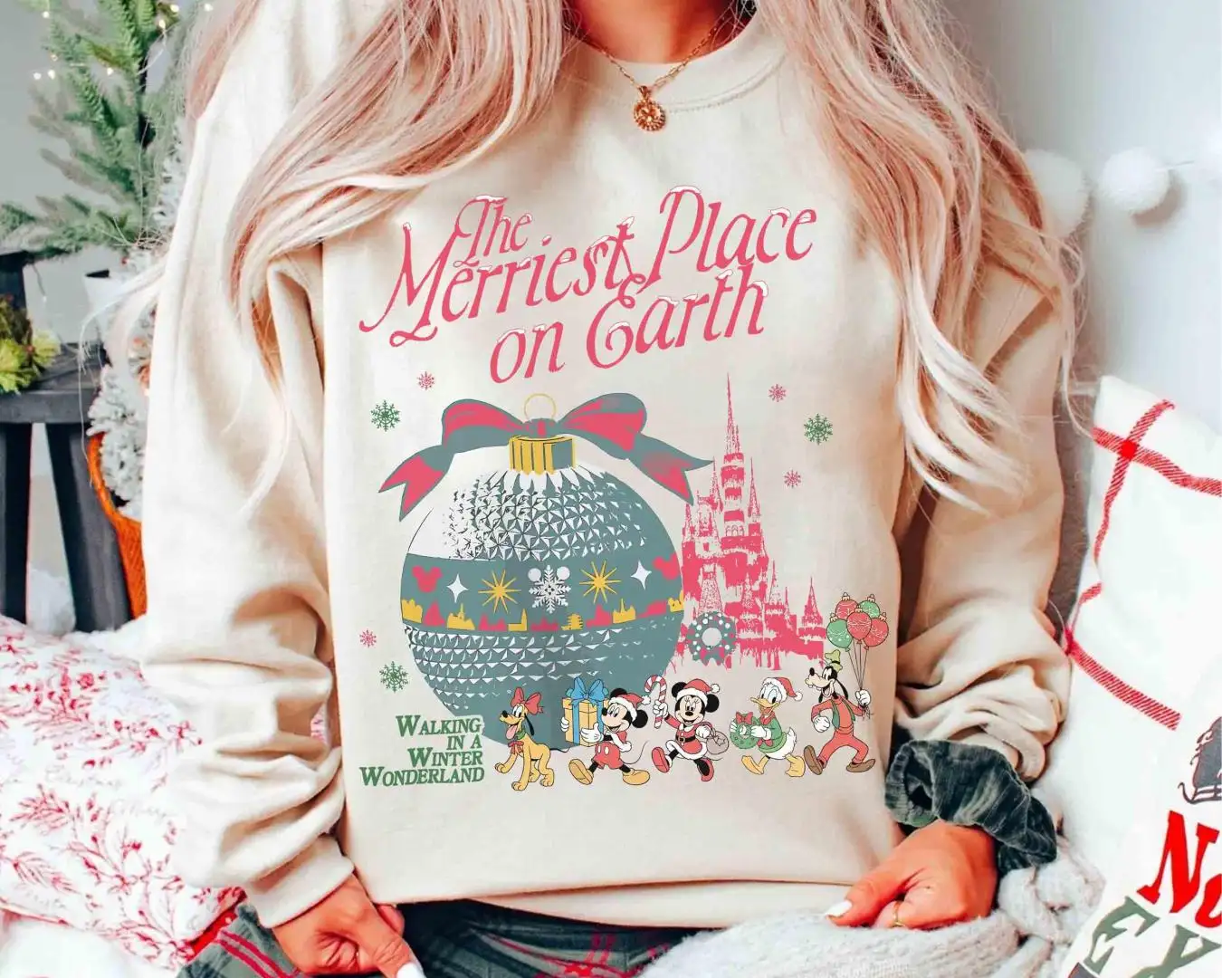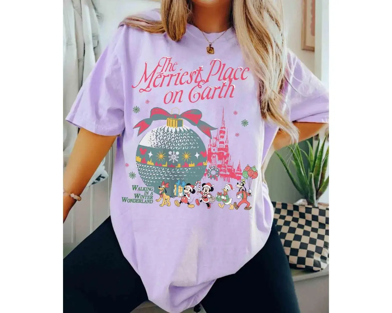 Vintage Disney Epcot Christmas Shirt, The Merriest Place On Earth – Walking In A Winter Wonderland Tee, Disneyworld Family Xmas 2025 Gift