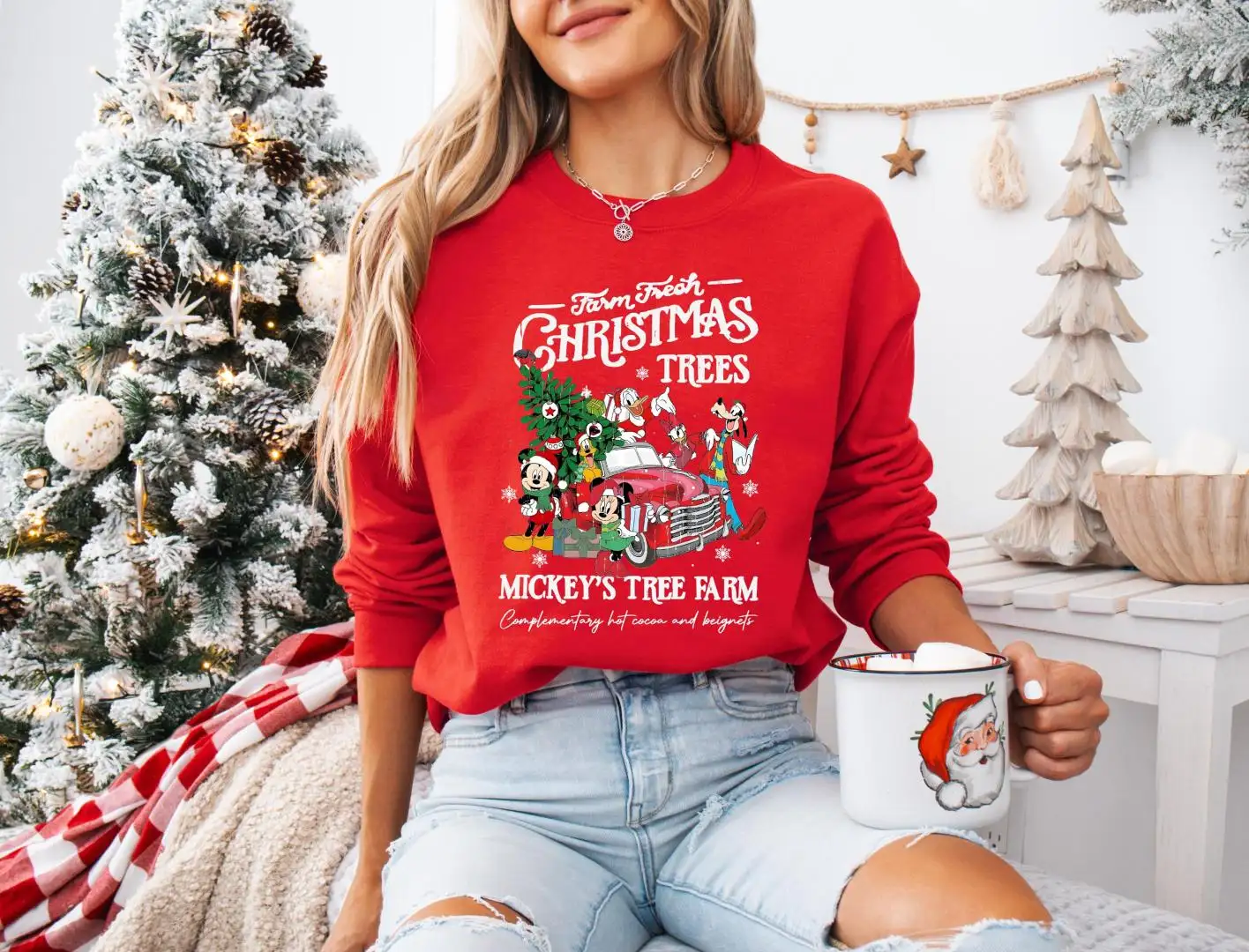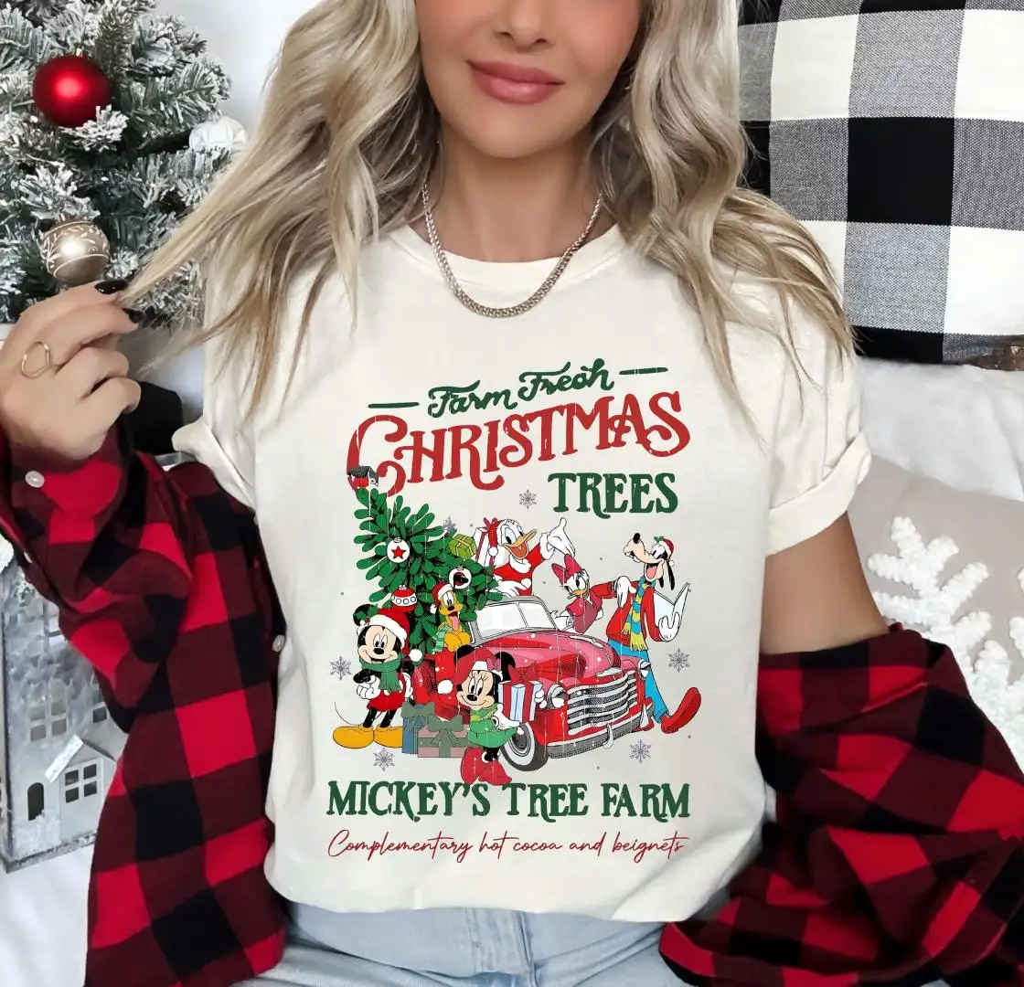 Vintage Disney Farm Fresh Christmas Shirt, Mickey And Friends Tree Farm Tee, Christmas Tree Hoodie, Xmas Family Holiday Sweatshirt
