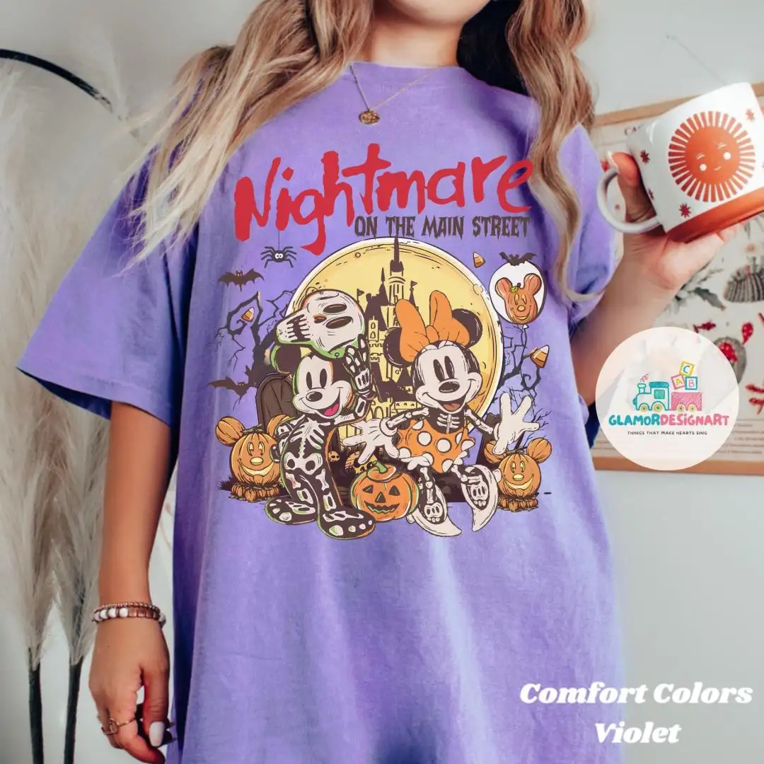 Vintage Disney Halloween Comfort Colors Shirt Nightmare On Main Street Shirt, Mickey Skeleton Shirts, Disney Trip Halloween 2025 Shirts