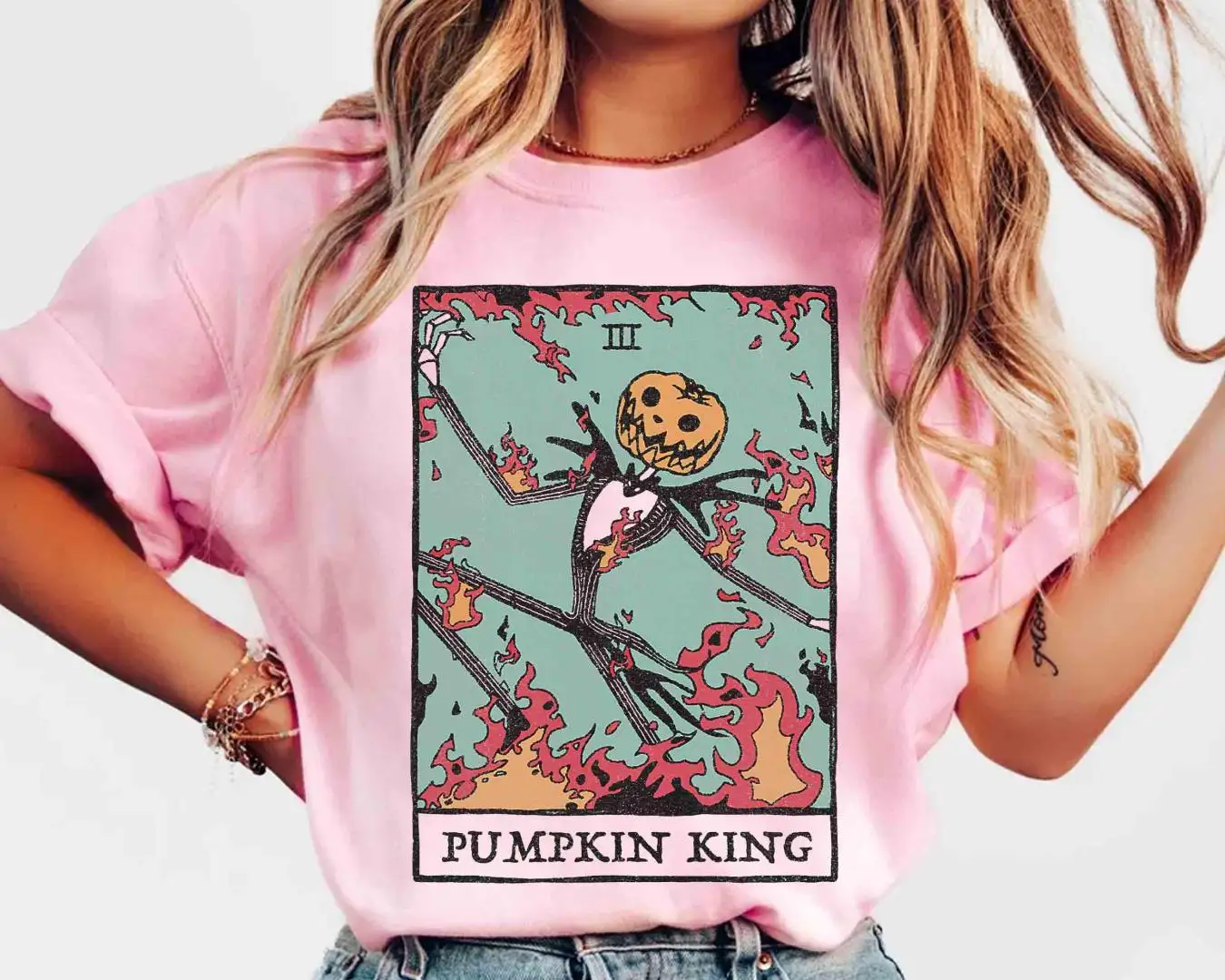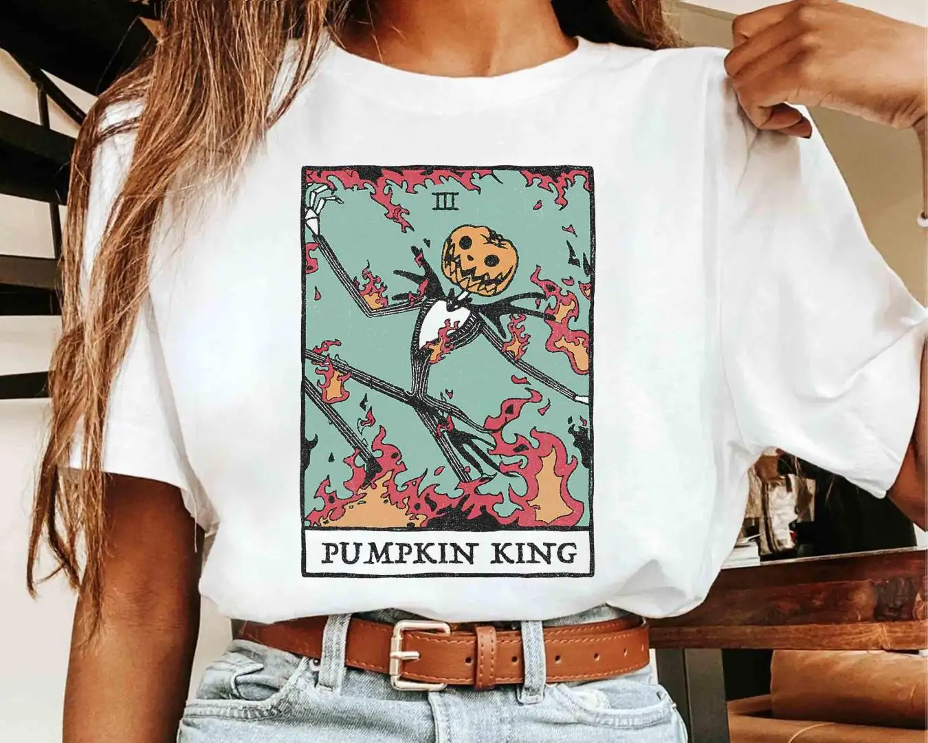Vintage Jack Skellington Pumpkin King Tarot Card T-Shirt, The Nightmare Before Christmas Tee, Disneyland 2025 Trip, Oogie Boogie Bash