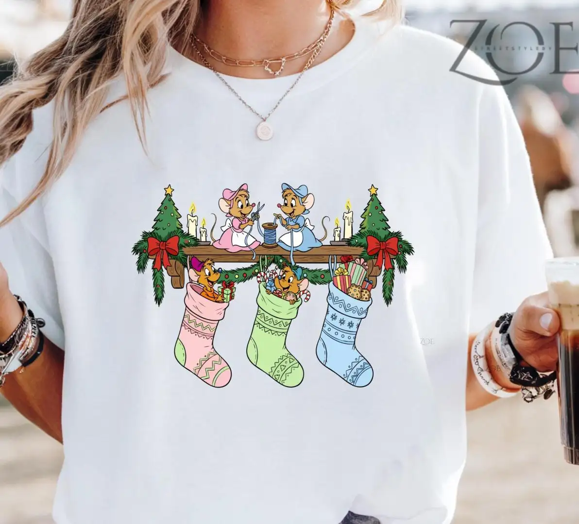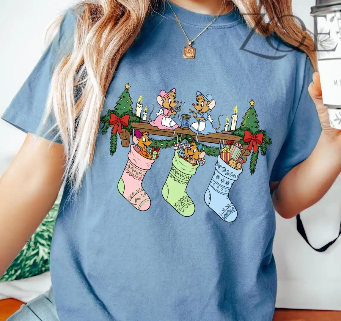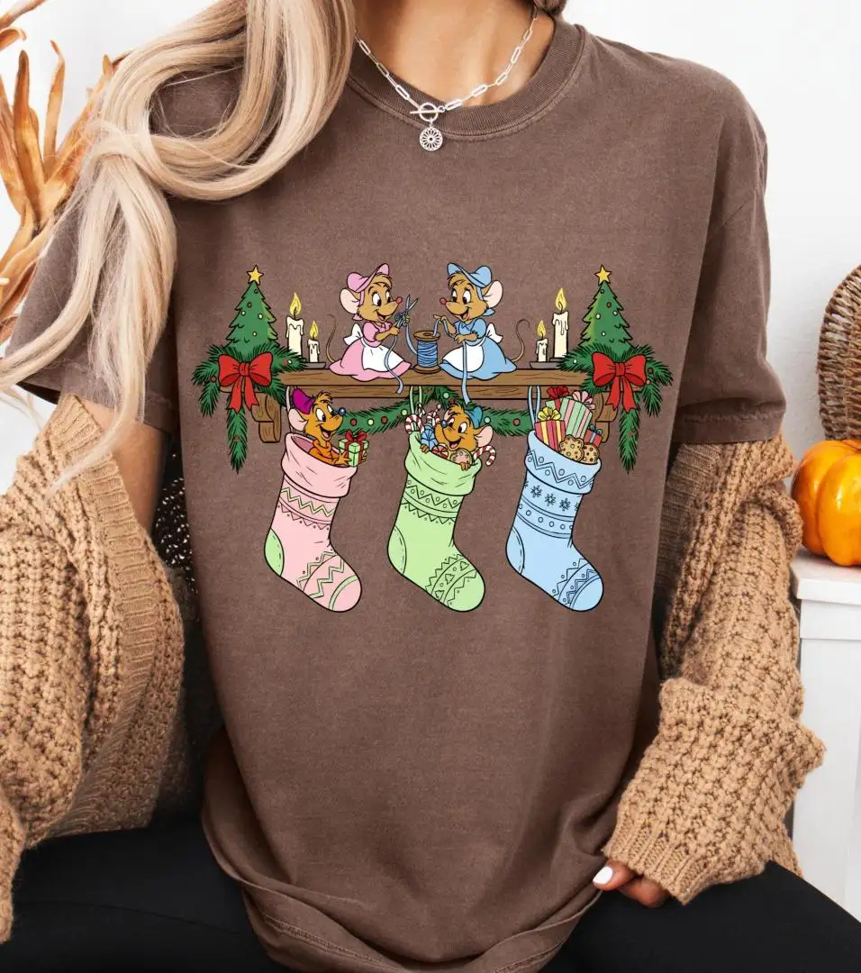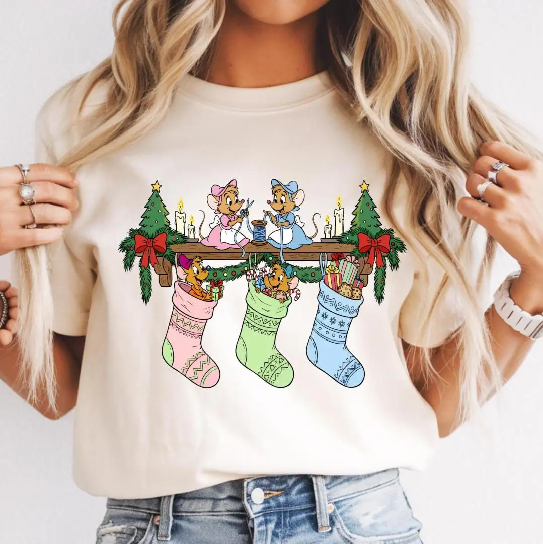 Vintage Jaq Gus Gus Christmas Shirt Princess Cinderella Mouse Stocking WDW Disneyland Family trip Christmas matching shirt