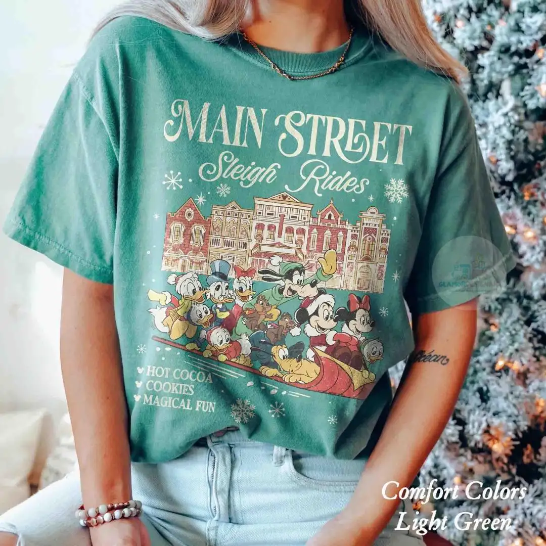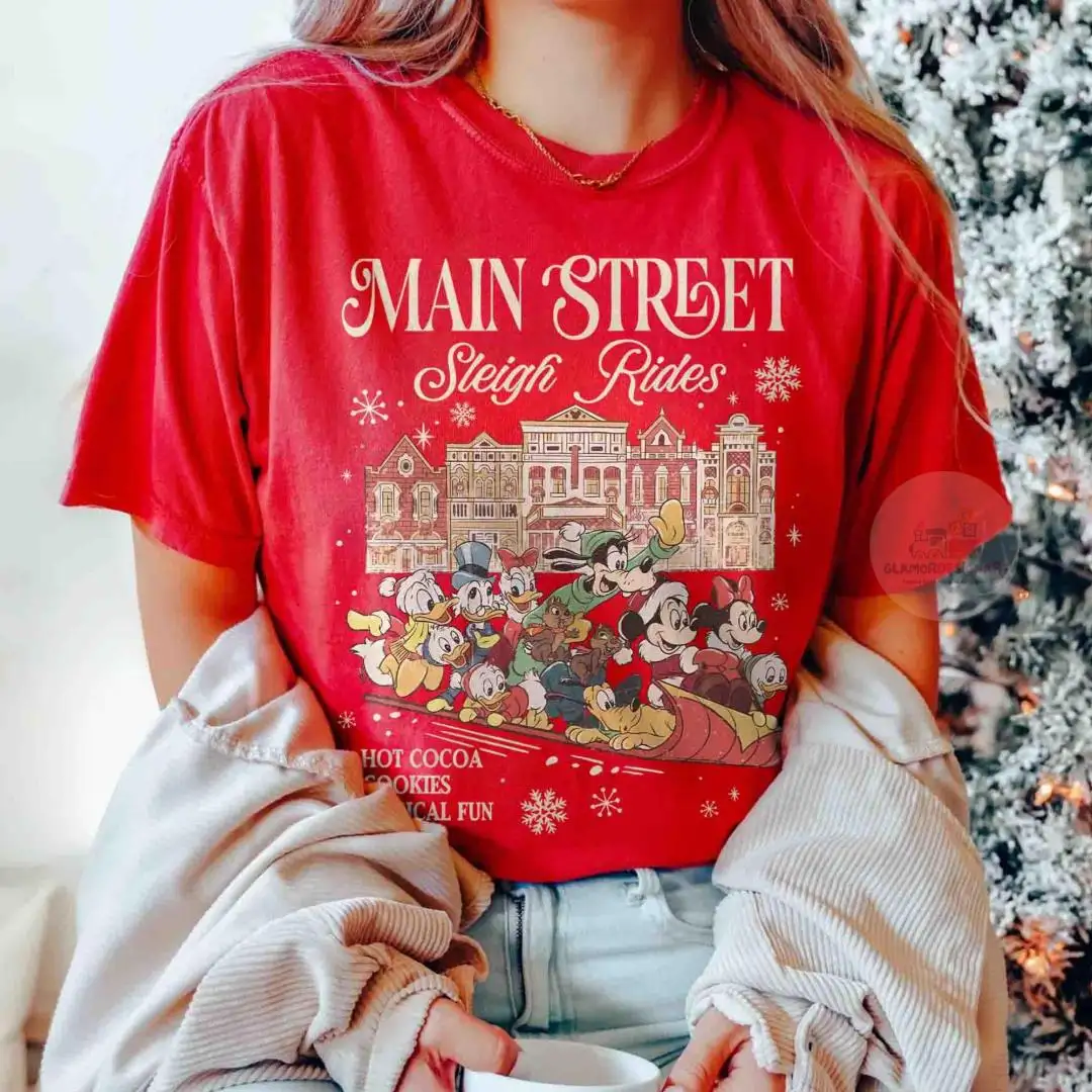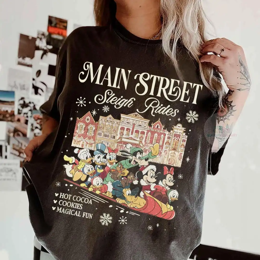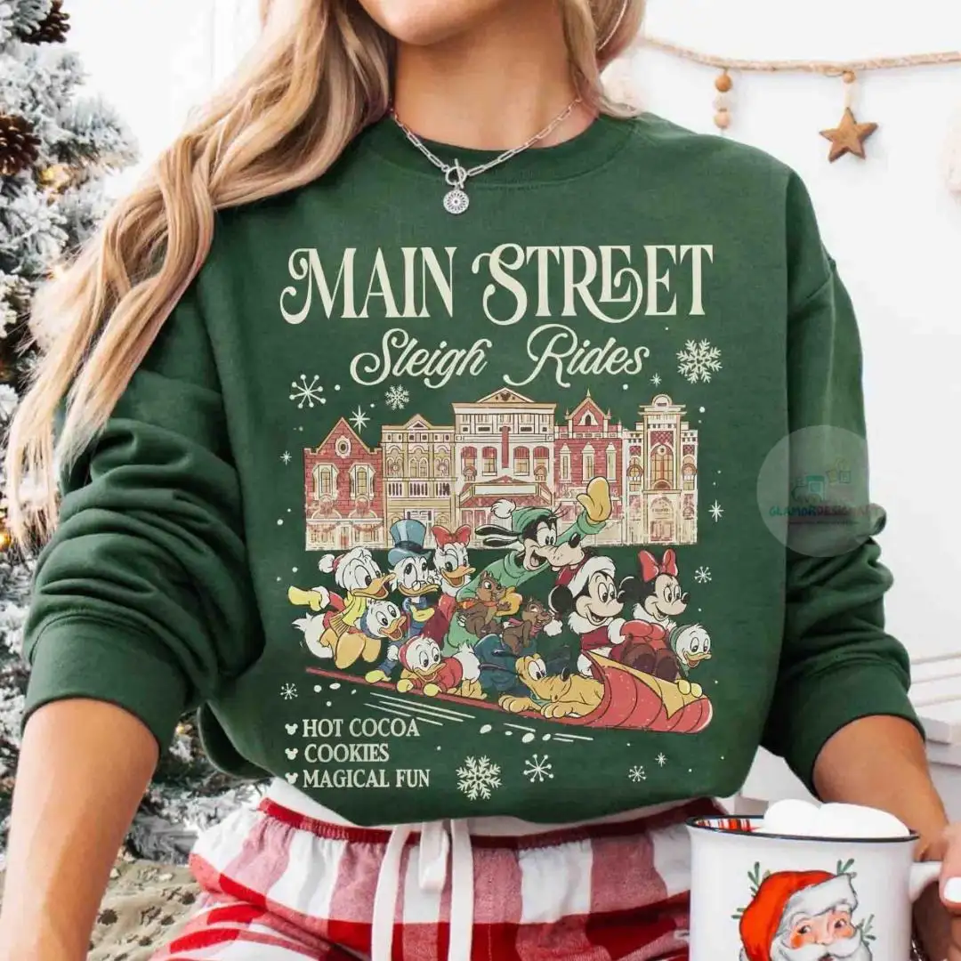 Vintage Main Street Sleigh Rides Disney Christmas Shirt, Disney Family Xmas, Disney Holiday Tee, Disney Mickey & Minnie Couple Sweatshirt