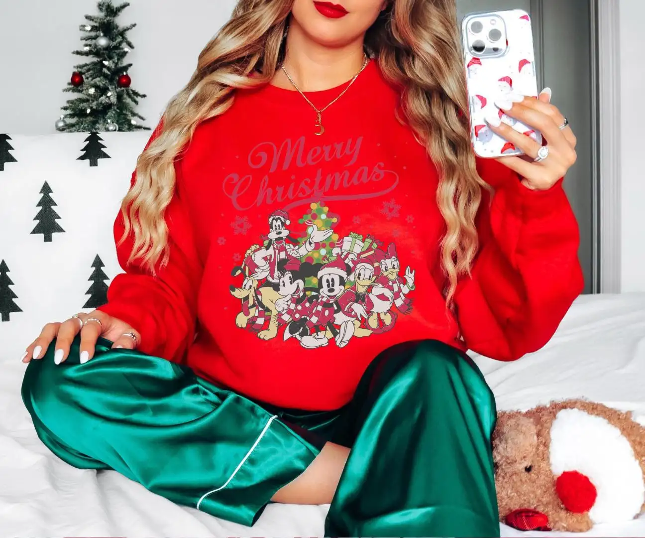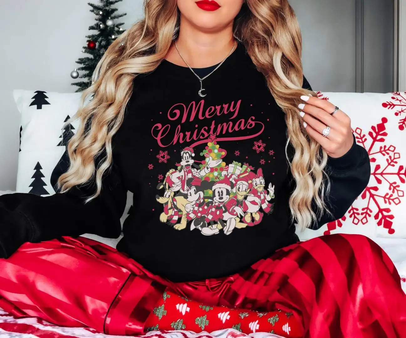 Review Vintage Mickey & Friends Merry Christmas Shirt, Disneyland Holiday Tee, Disney Xmas Sweatshirt, Mickey's Very Merry Christmas Party