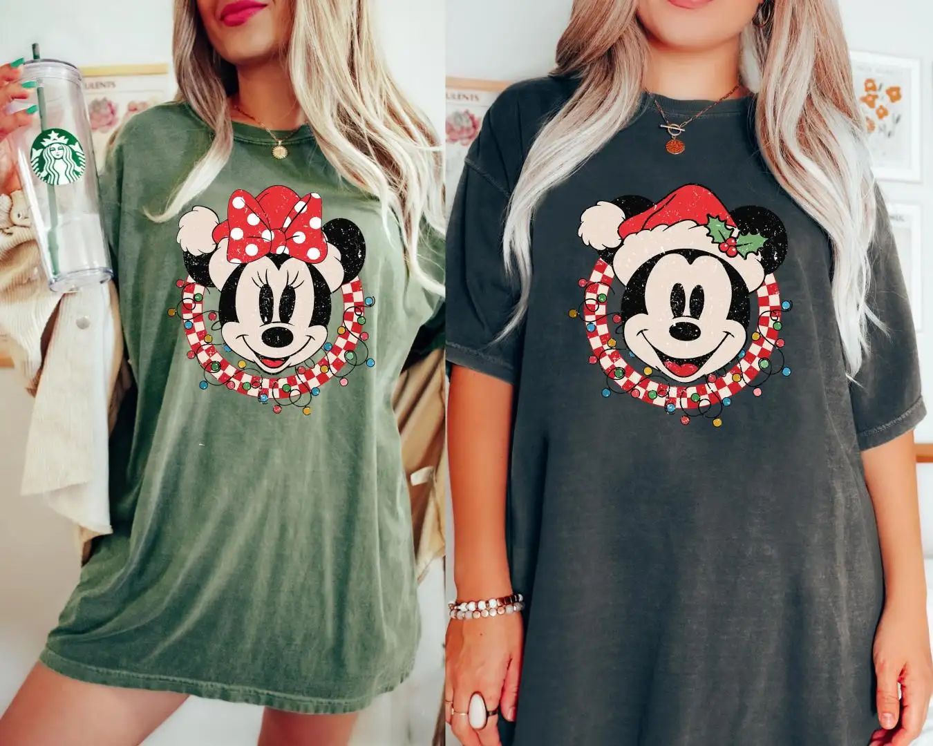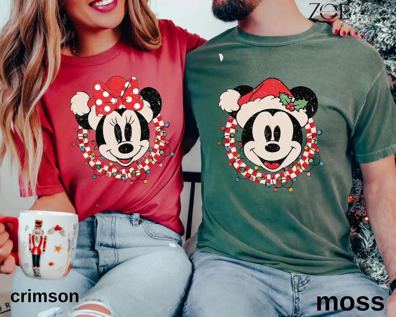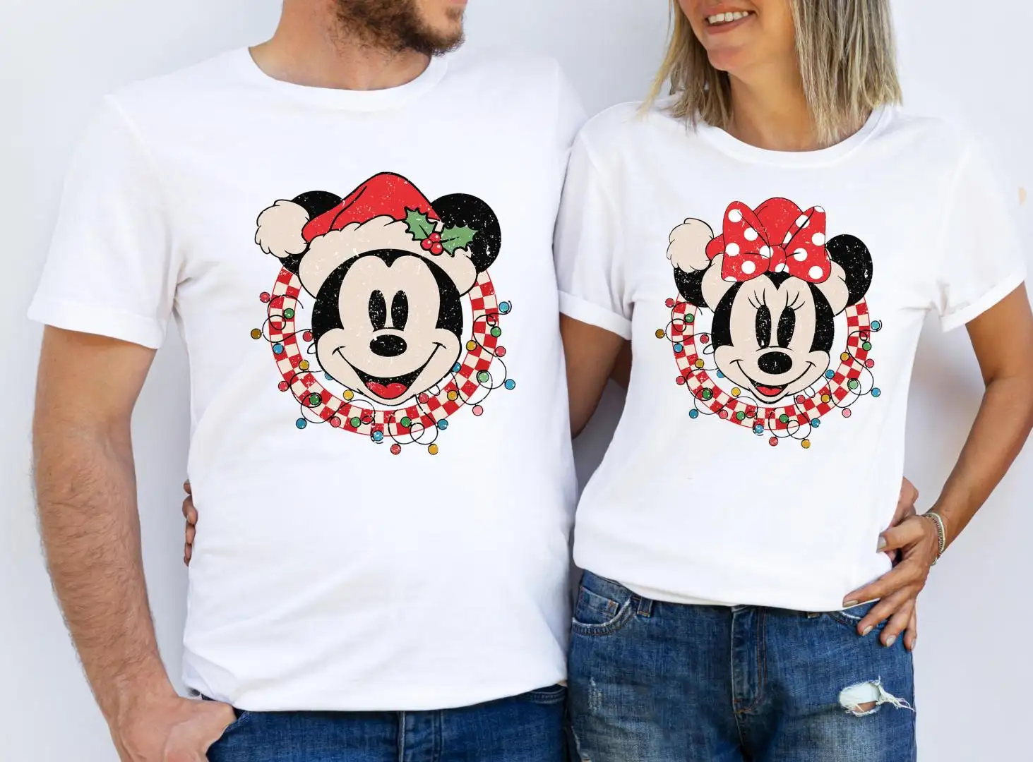 Review Vintage Mickey Minnie Checkered Shirt, Christmas Couple Shirt, Retro Disney matching Shirt, Disney Christmas Shirt, Disney Christmas Party