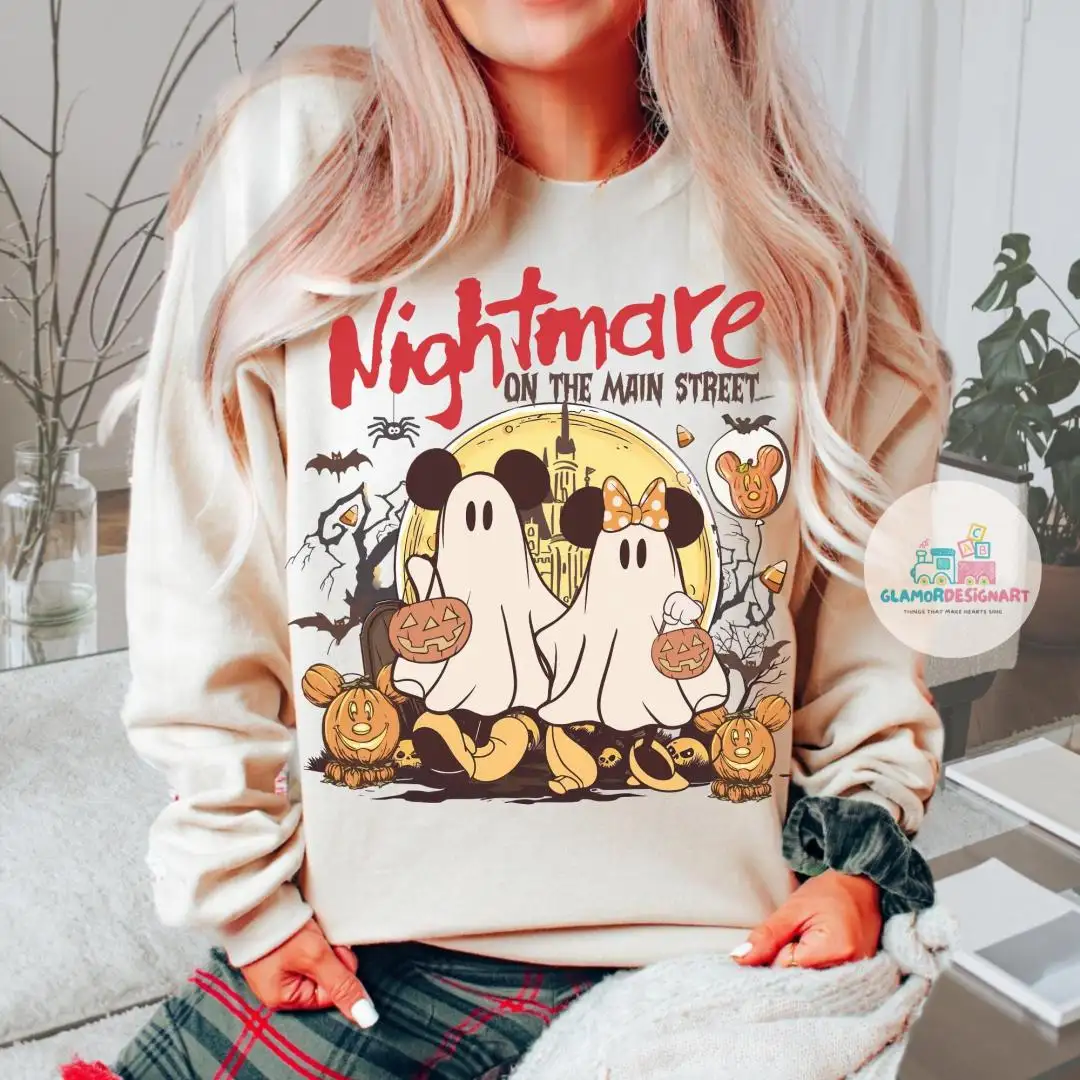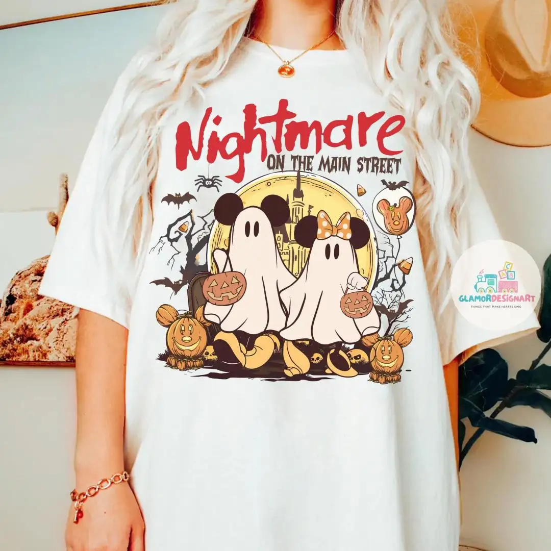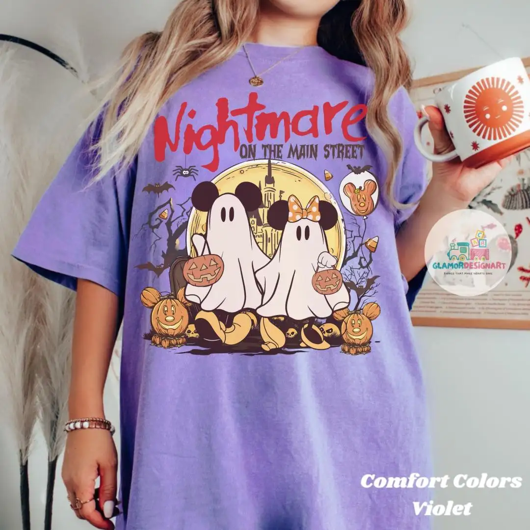 Vintage Mickey & Minnie Ghost Nightmare On Main Street Comfort Colors Shirts, Mickey Ghost Shirts, Disney Trip Halloween 2025 Shirts
