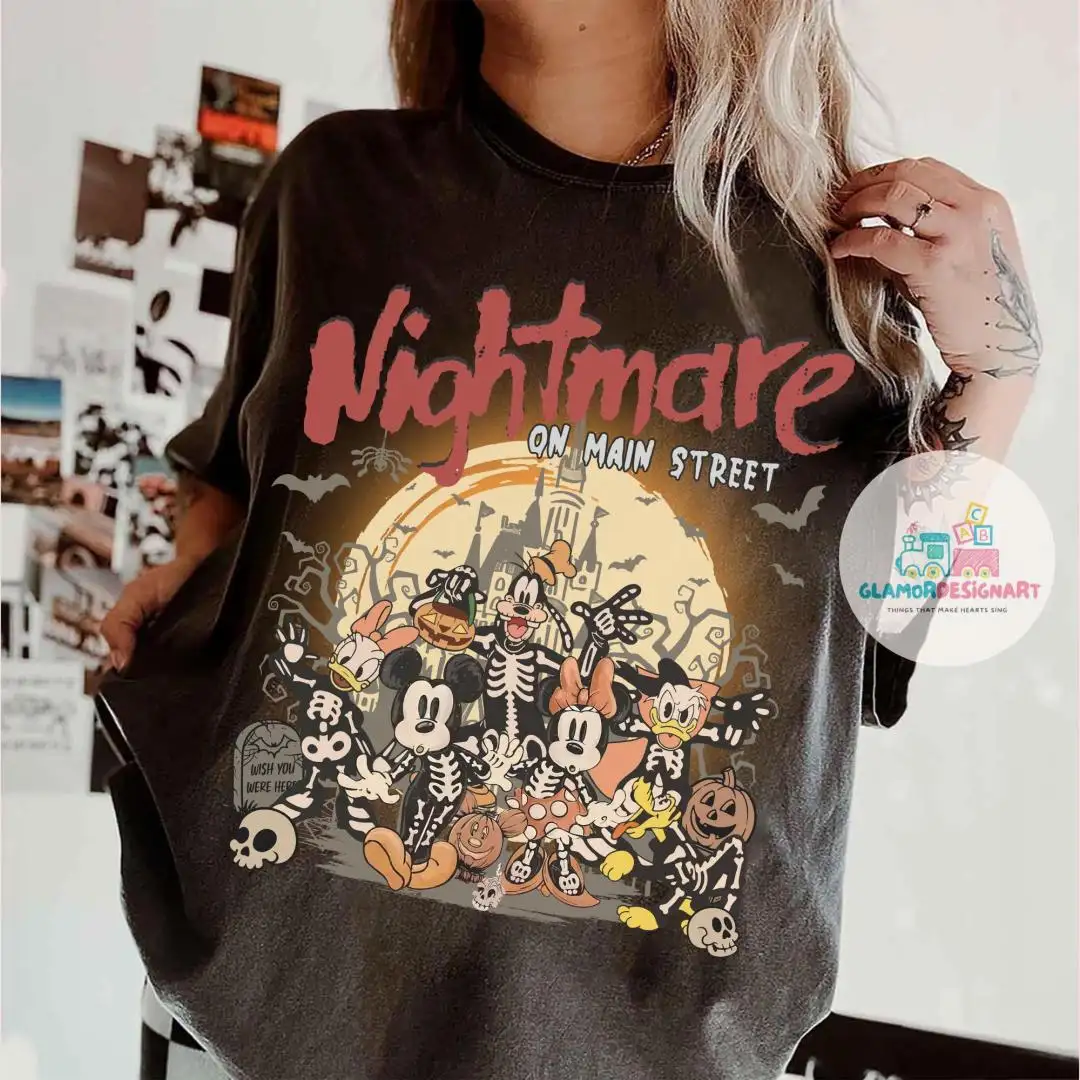 Vintage Mickey & Minnie Skeleton Nightmare On Main Street Baby Tee Crop Top, Mickey Skeleton Baby Tee, Disney Trip Halloween Baby Tee