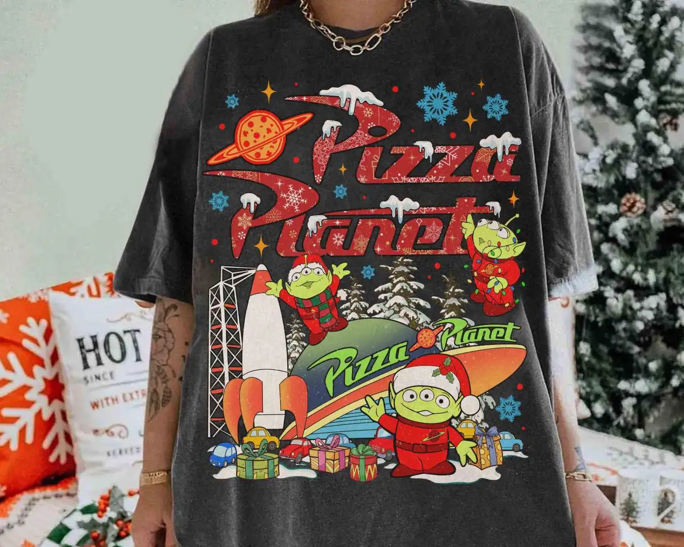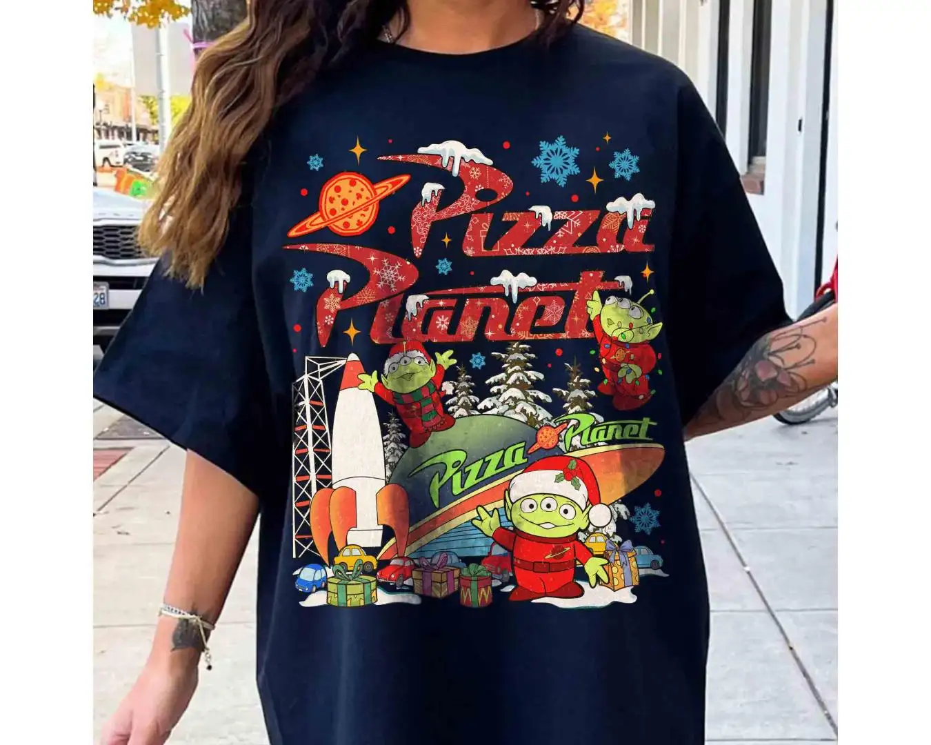 Vintage Pizza Planet Toy Story Christmas Shirt, Aliens Toy Story Pizza Planet Xmas Tee, Mickey's Very Merry Christmas Disneyland 2025 Trip