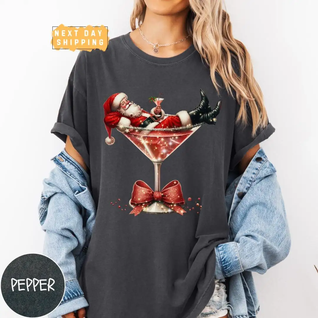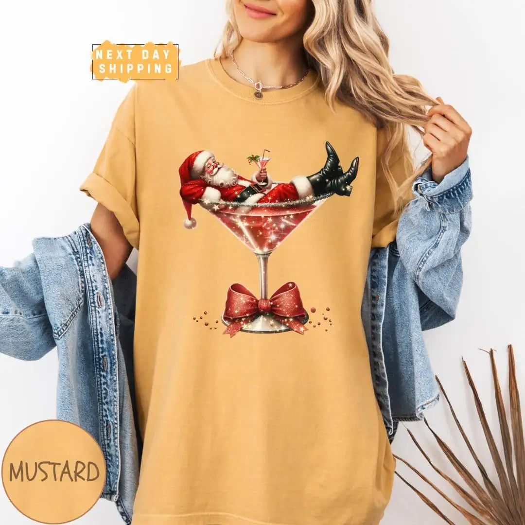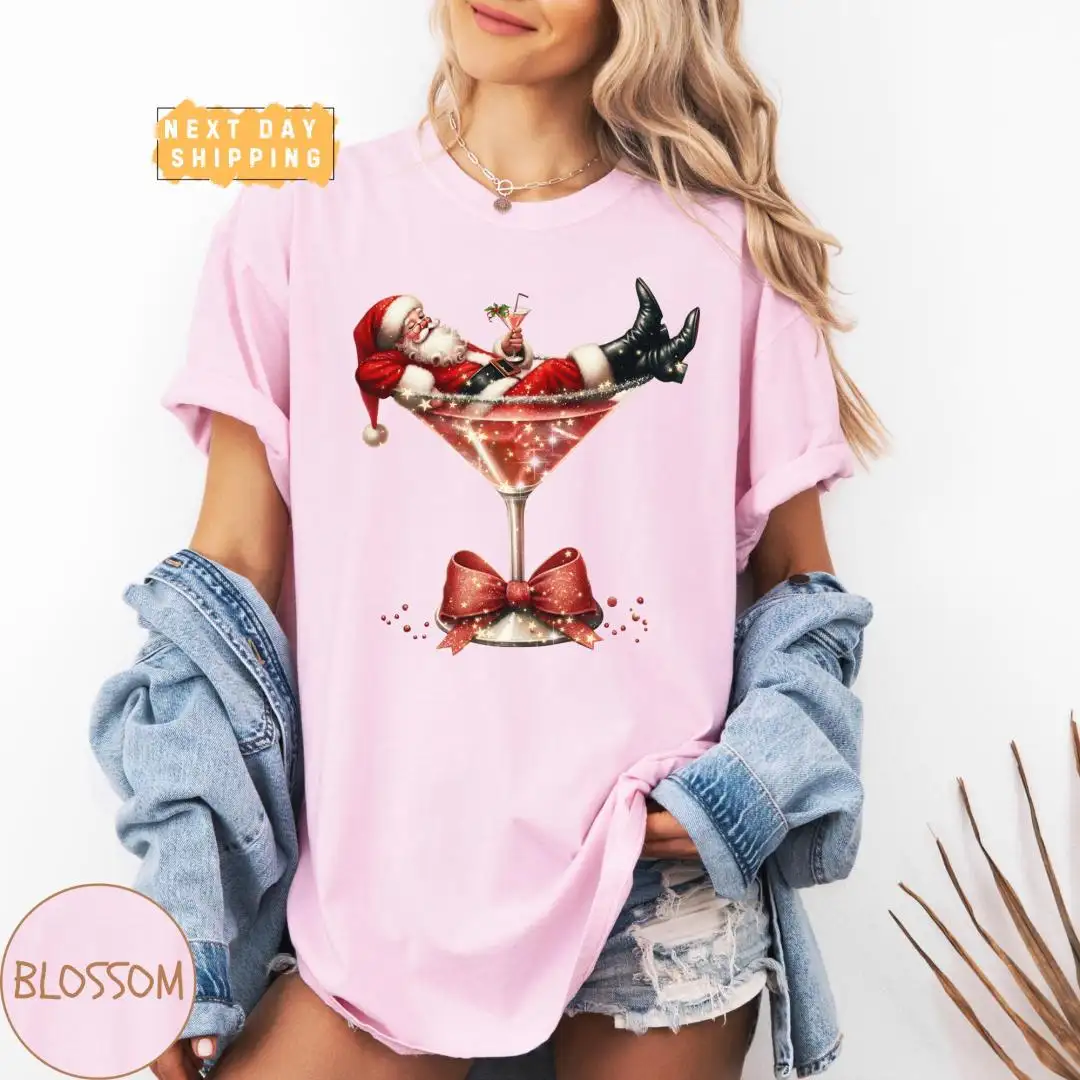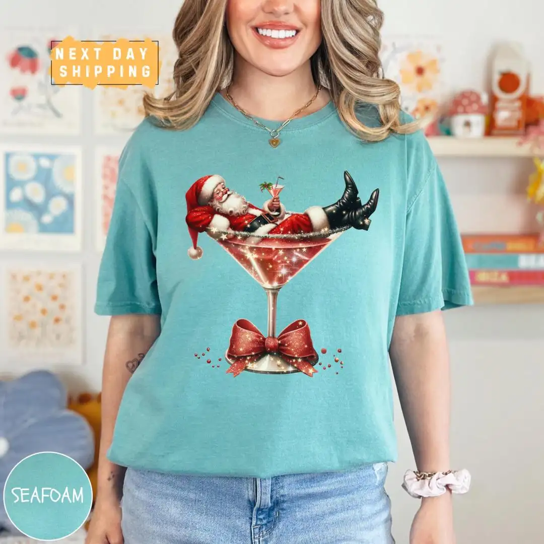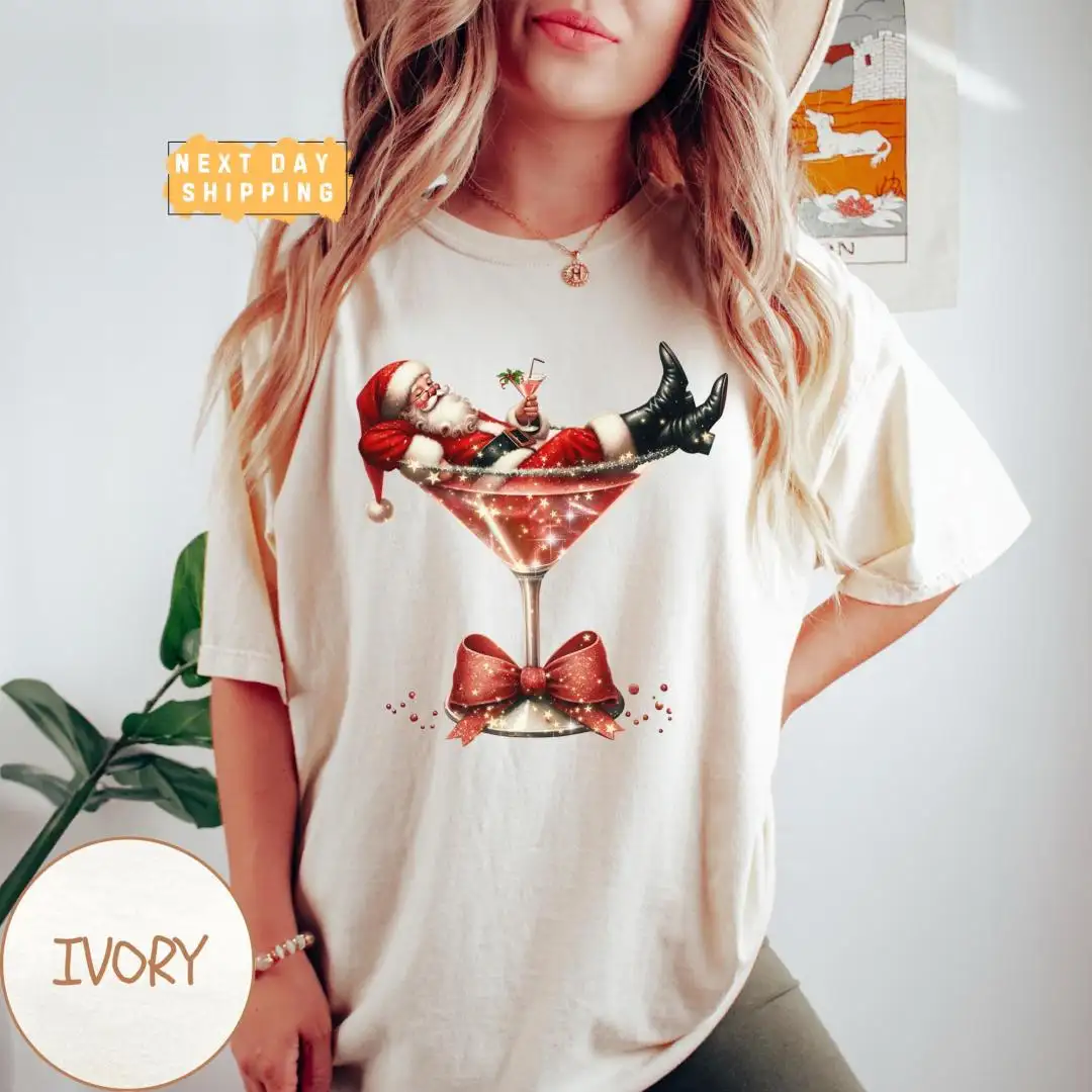 Vintage Santa Martini Christmas Drinking Shirt for Women