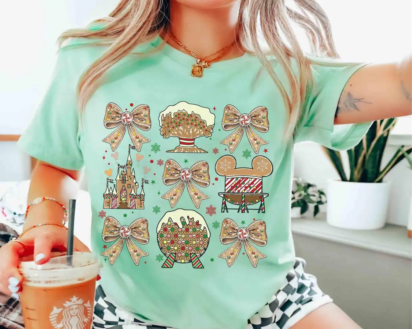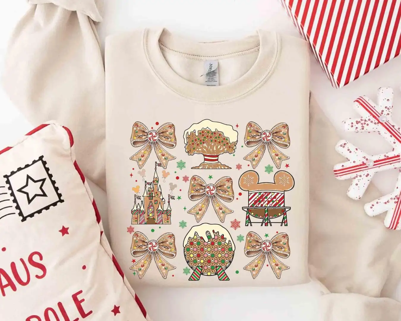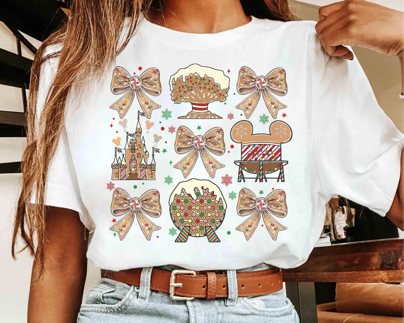 Review Walt Disney World Coquette Bows Gingerbread Christmas Shirt, Epcot World Tour Xmas Tee, Hollywood Studio, Mickey's Very Merry Xmas Party