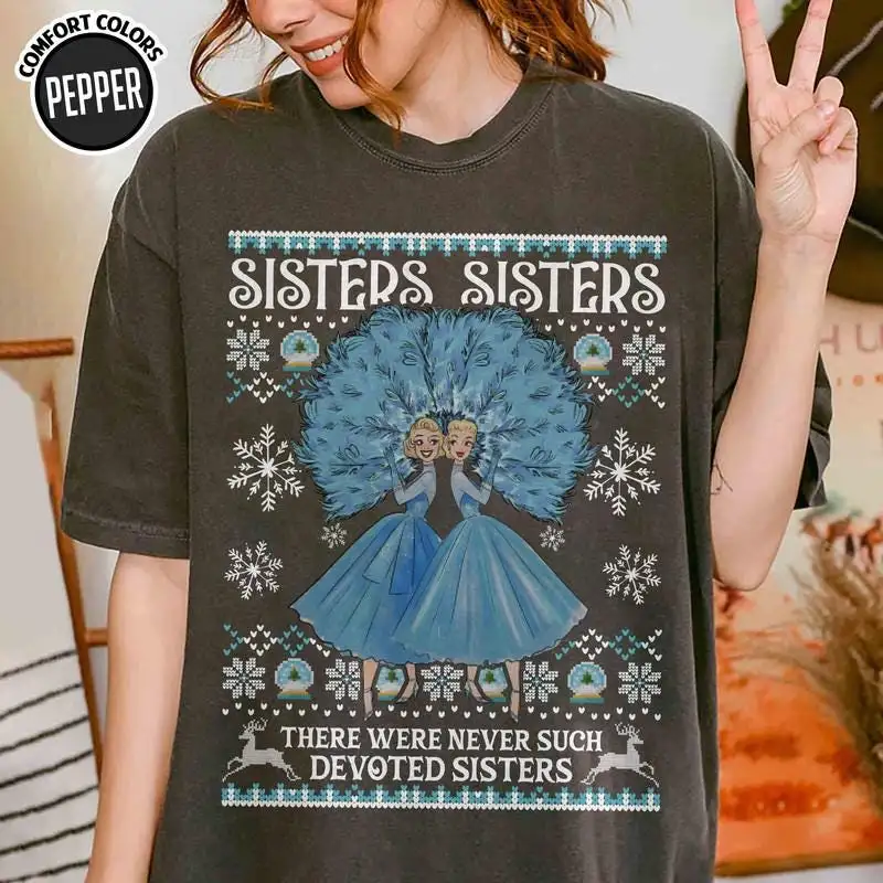 White Christmas Ugly Christmas Sweater Shirt, Haynes Sisters Tees, Christmas Movie 08, Sisters Sisters There Were Never Such Devoted Sisters