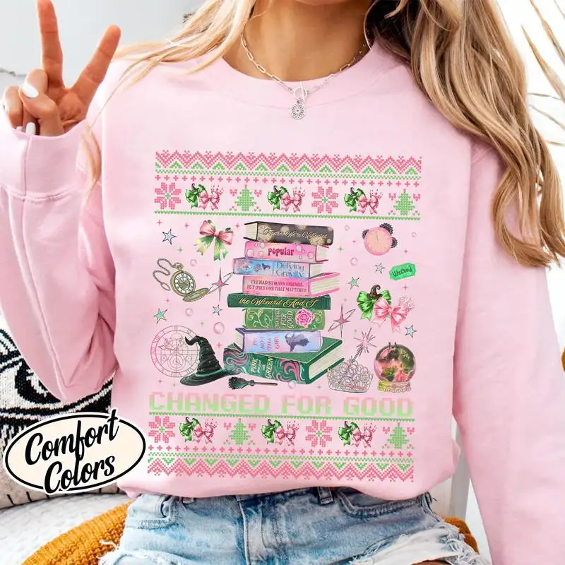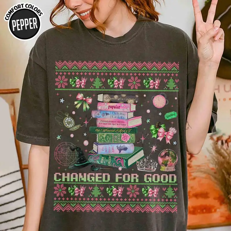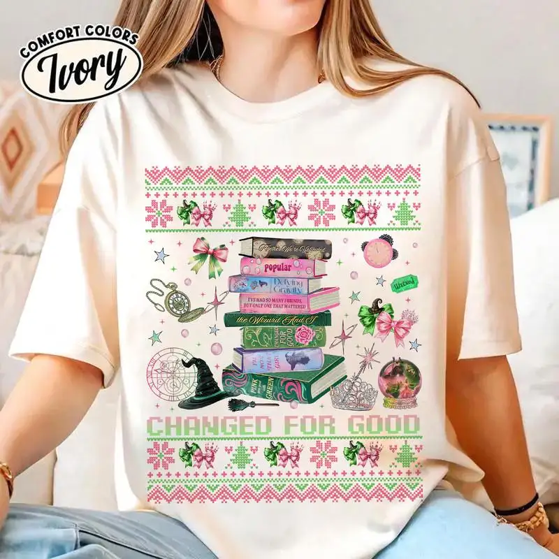 Wicked Changed For Good Book Comfort Colors Shirt, Christmas Movie Shirt, Defy Gravity Broomstick Magic, Elphaba And Glinda Christmas Shirt