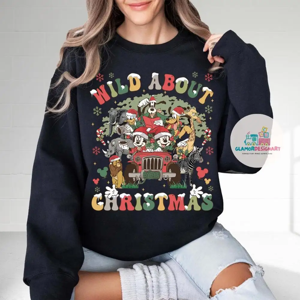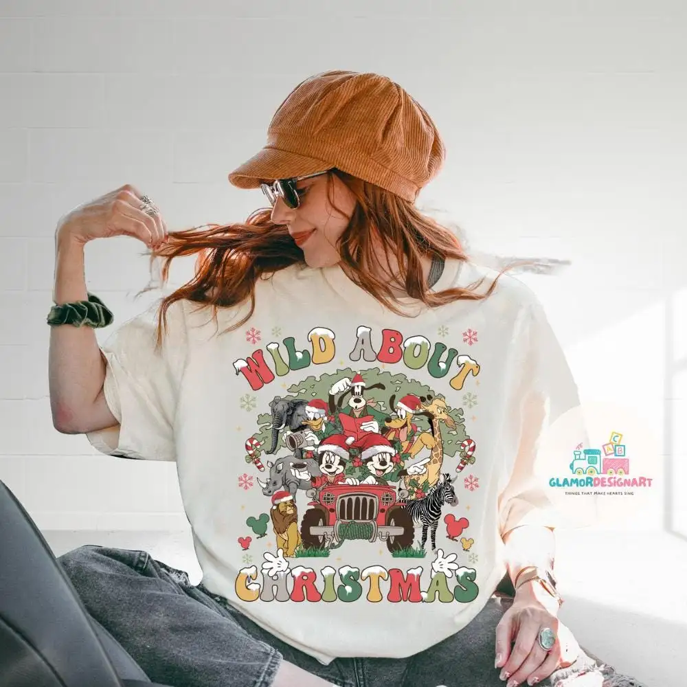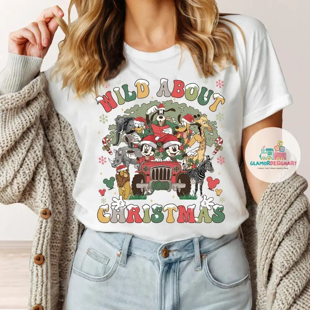 Wild about Christmas Disney Animal Kingdom Shirt, Mickey & friends Safari Mode shirt, Family adventure Let's get wild WDW shirt